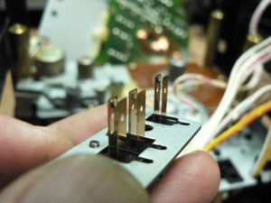 テープセレクタの接点は黒く酸化していますのでクリーニングを施します。