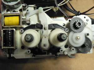 一晩接着剤が乾くのを待って、動作確認です。治りました。左側リールのブレーキは再生時にリールにブレーキを掛けて、走行が安定するようテープにテンションを与えます。それが無くなったため、テープ走行が乱れ、雑音が発生したというのが今回の不具合発生の理由です。