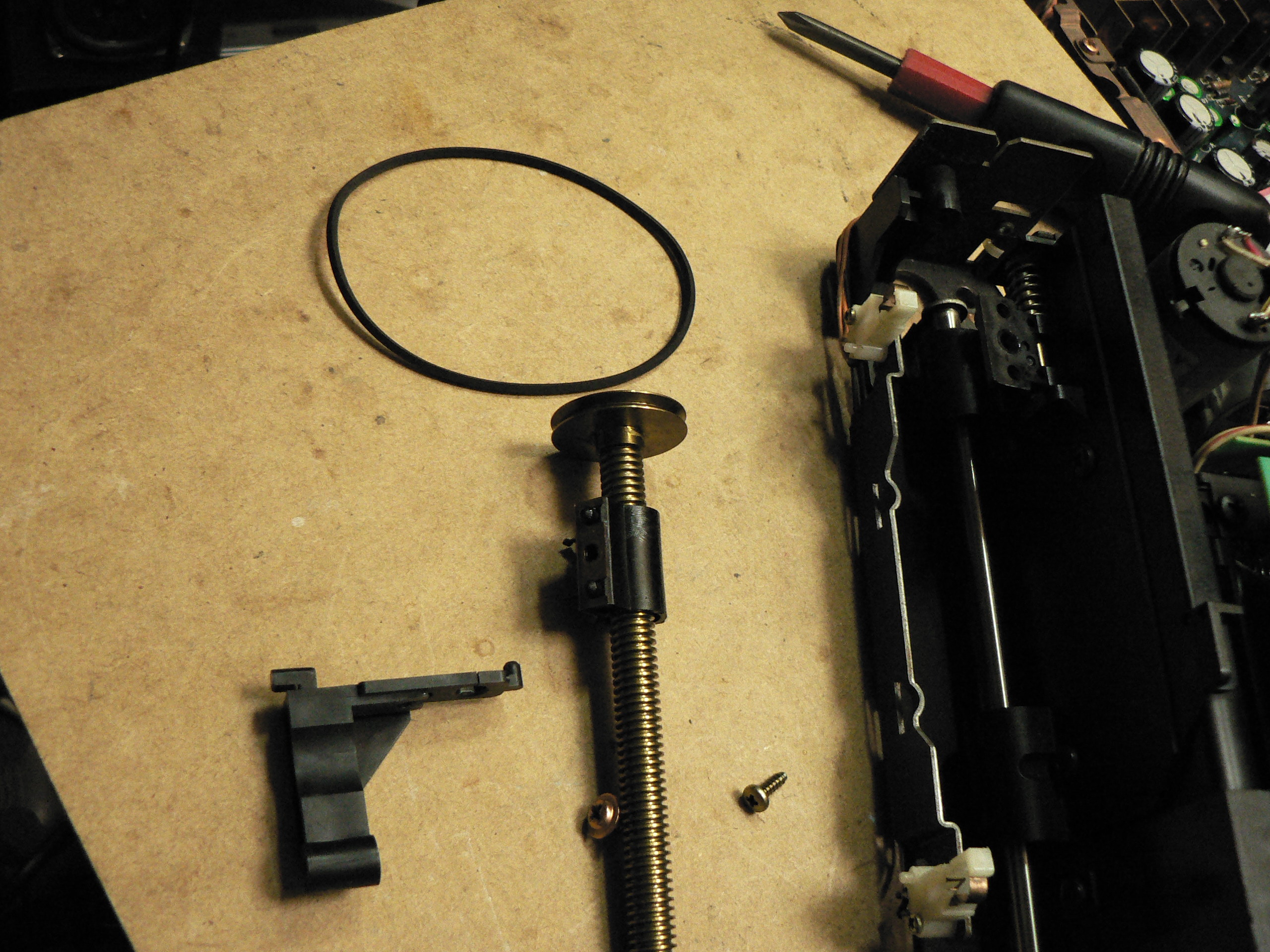 DTC-1000ESは、トレイメカを外した状態で動作確認ができますが、この機種ではできませんので、ここは、これまでの経験を生かして一発勝負です。万一作動しないときは、組み立て後に再度分解したうえで調整しなおしです。