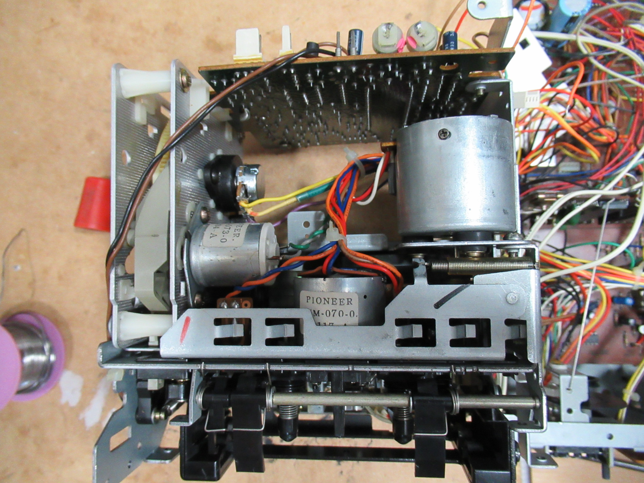 PIONEERの3ヘッドデッキCT-770の整備を行いました。ベルトやアイドラーゴム交換などを終えて、いざ試運転!と思ったらまったく動作しません。多少のわけのわからない動作はするものの、早送りや再生等はまったくダメです。