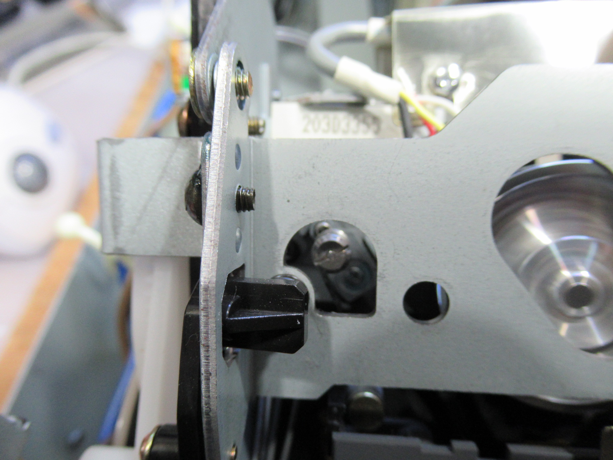 ヘッド左側のテープガイドの高さを調整し、ノイズを解消することができました。