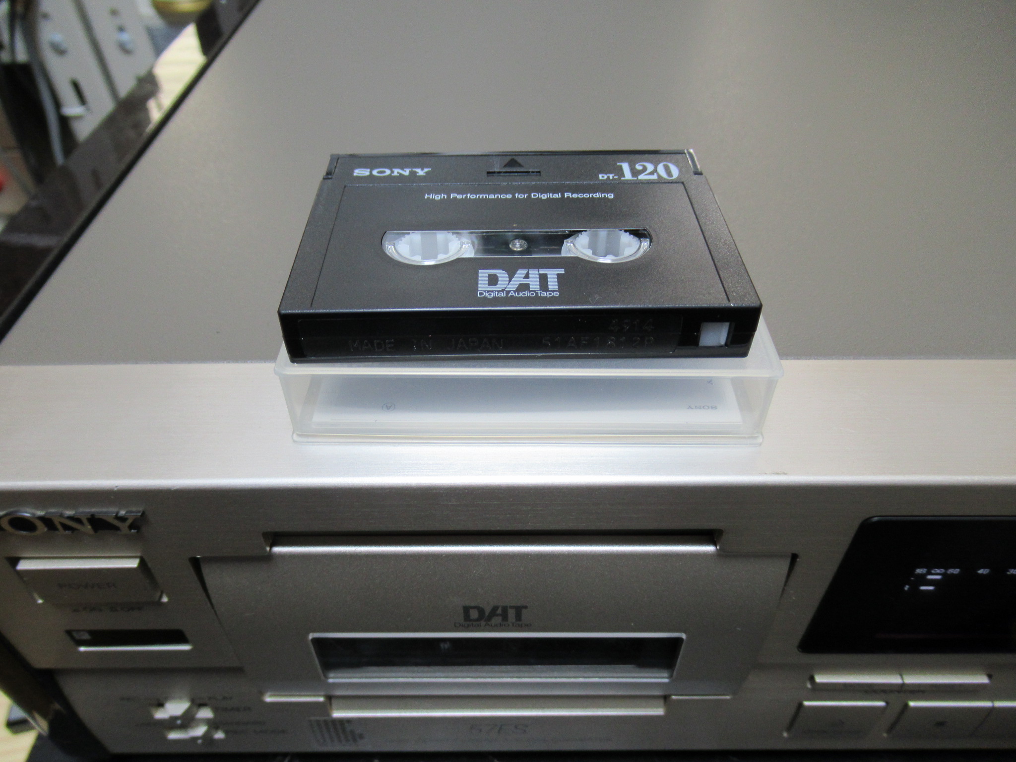 オーナー様から巻き戻し不良が発生したテープを送っていただきました。問題なく巻き戻しできることを確認します(注:57ESでは、巻き戻し開始位置などによっては操作後2秒程度もたつくことがありますが、故障ではなくこの機種の仕様です。)。