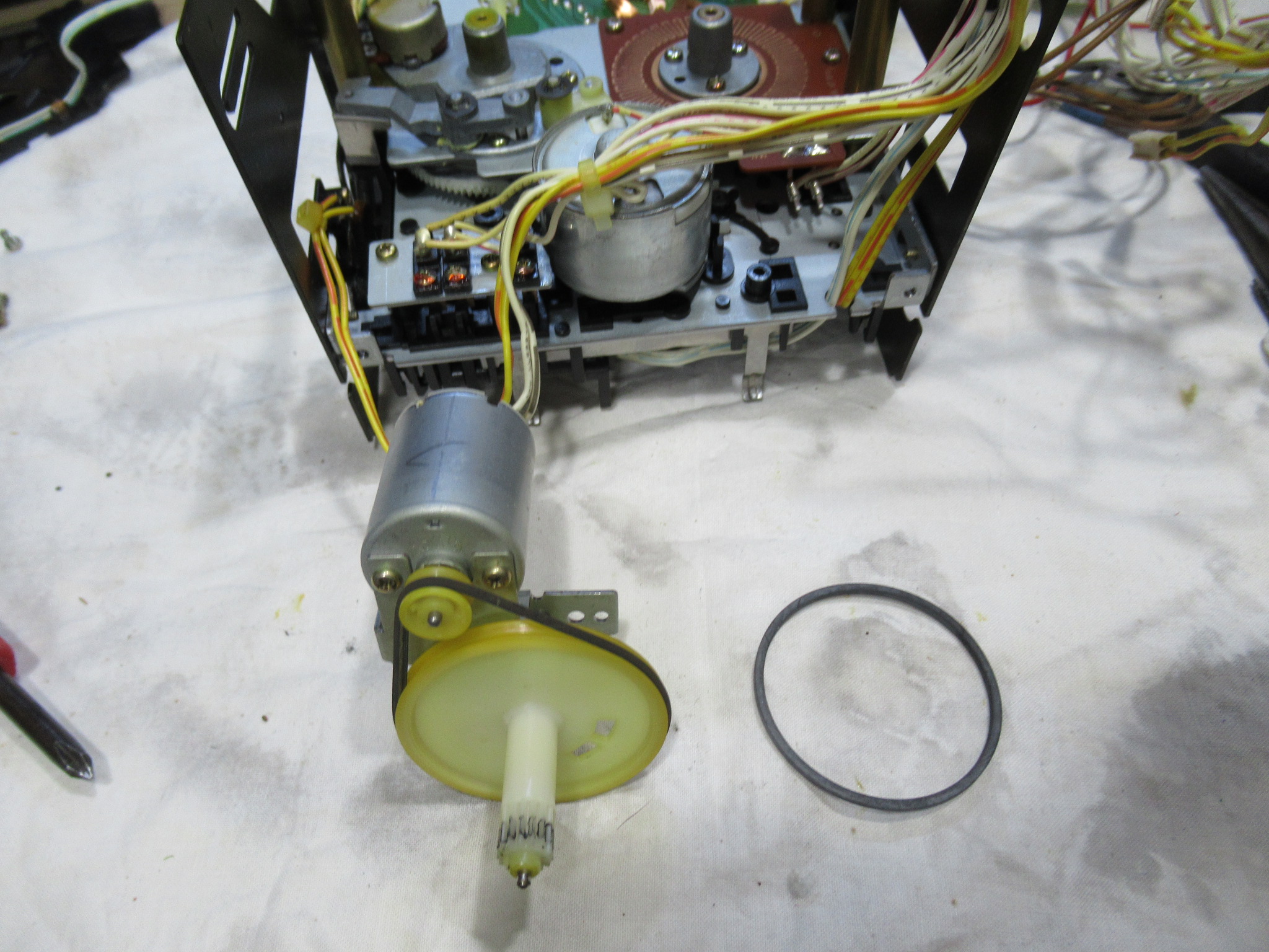 新しいベルトを掛けて、メカの整備が完了です。