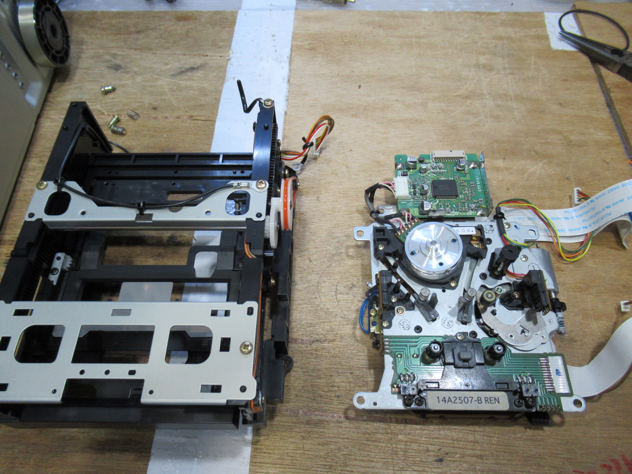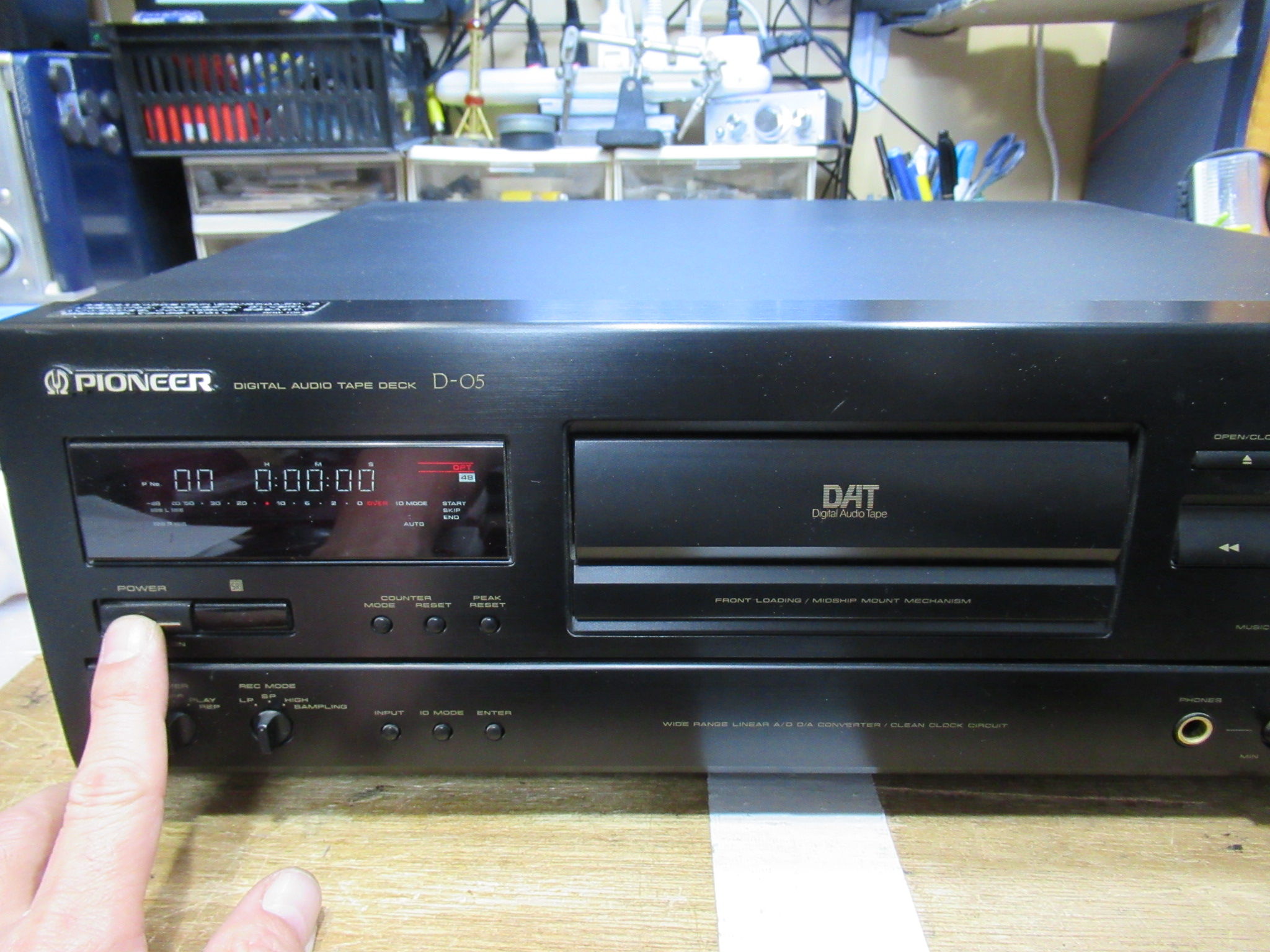 PIONEERのDATデッキ、D-05です。 ローディングに異音が発生し、最近は再生中に停止するなどの誤作動も起きるということです。 テープをセットすると「カシャカシャ」というギヤを引きずっているよう …