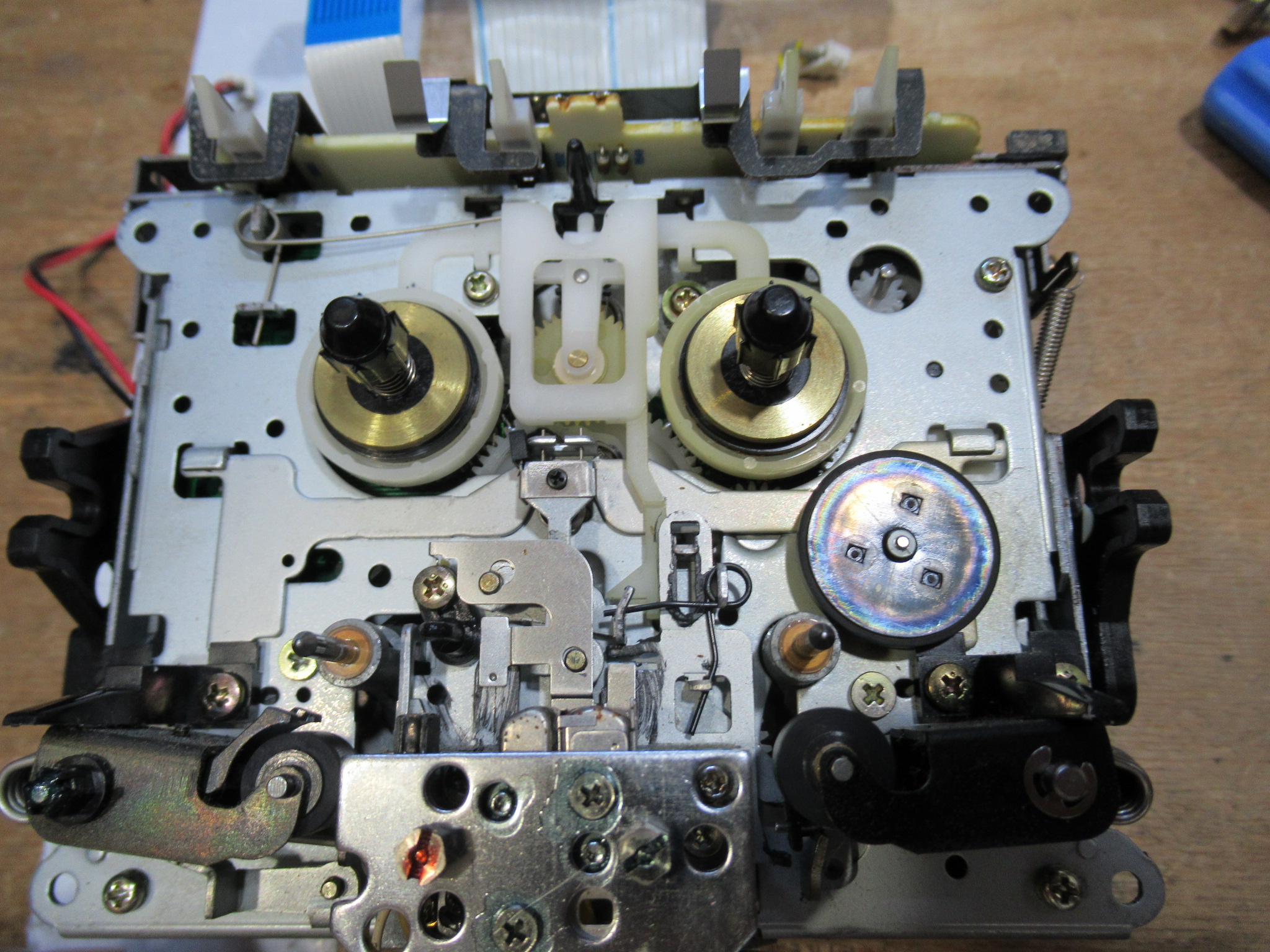 昨年から徐々に調子が悪くなり、遂にはトレイが閉まらなくなったということです。JVCのサービスセンターで「モーター及びギヤ不良であるが部品がない」ということで断られたため、当店の出番となりました。本当にモーターの故障でしょうか?