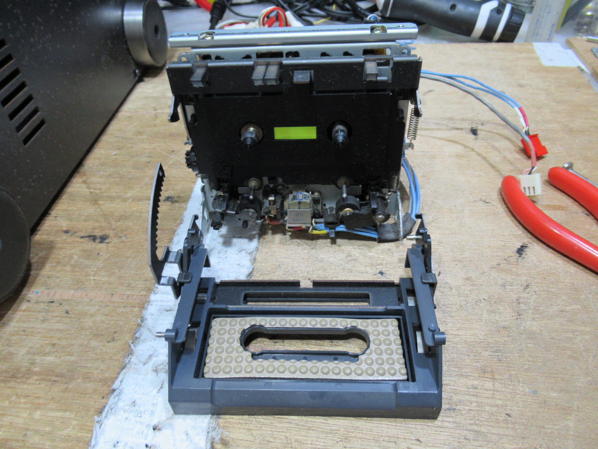 SONY製3ヘッドデュアルキャプスタンカセットデッキ、TC-K333ESJの修理依頼をいただきました。 7・8年前に故障し、現在に至るということです。 イジェクトボタンを押すと、かすかにモーター音が聞 …