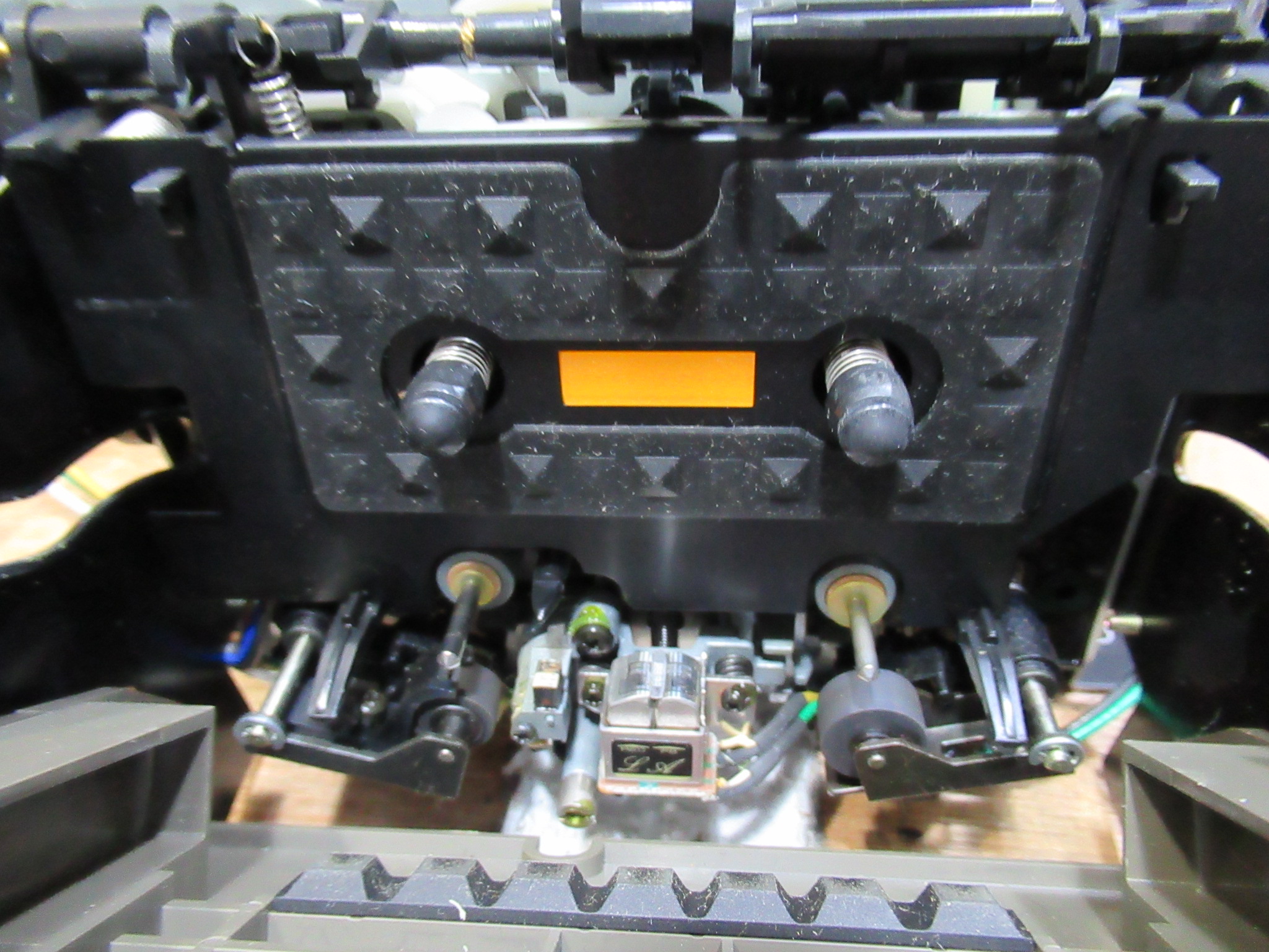 このデッキは、メカが奥まっていて、ピンチローラーやキャプスタンの清掃が大変です。この機会に専用クリーナーで清掃を行います。