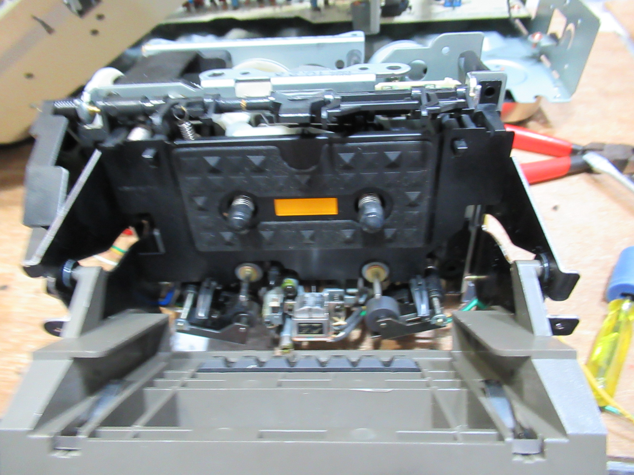 メカを本体に戻して動作テストを行います。後ほどアジマス調整を行いますので、まだリッドは取り付けません。