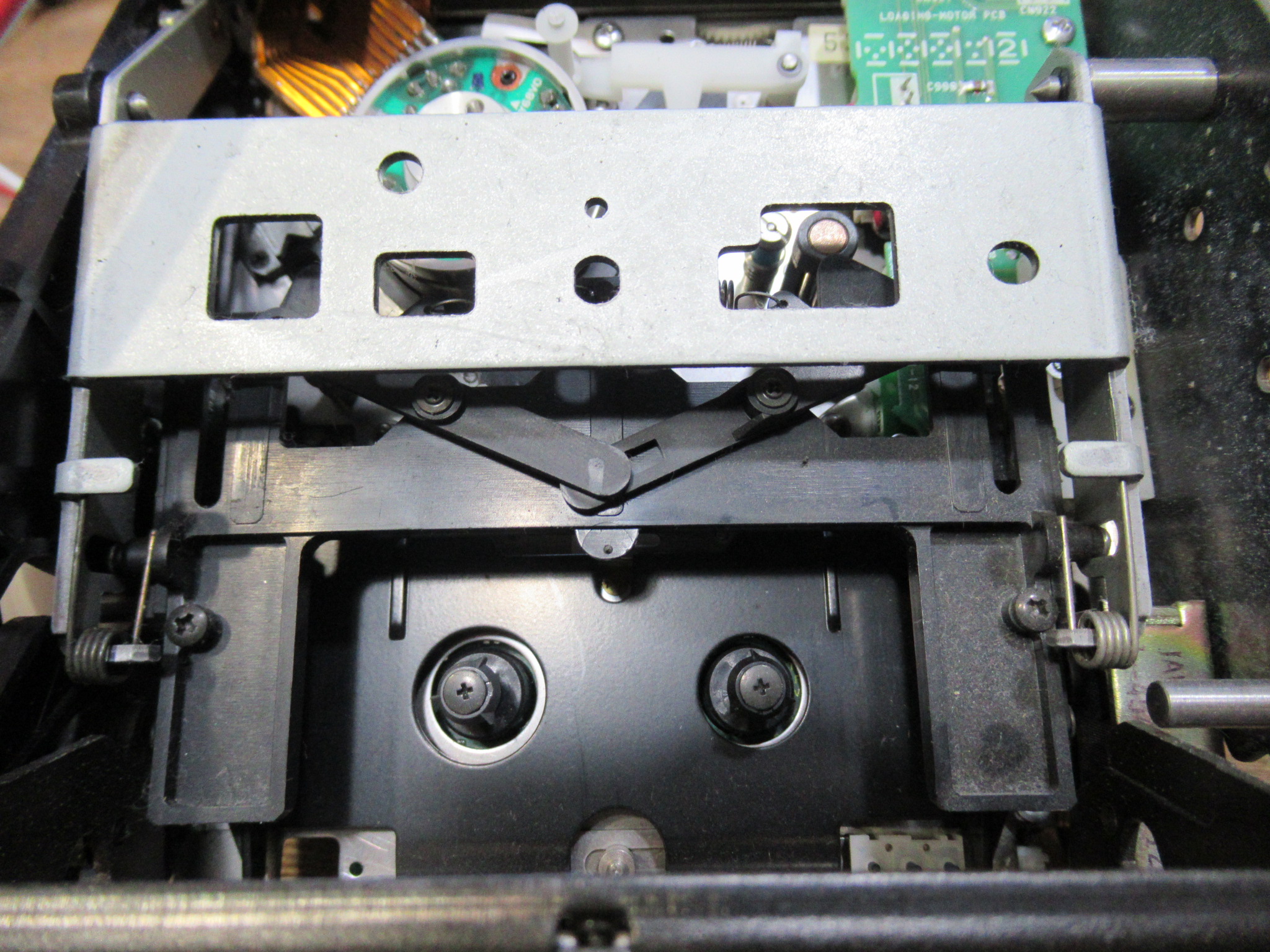 テープをセットし、リモコンで操作すると暴走は起こりません。テープ走行は正常ですが、今回はメカの分解整備も行うこととなりました。