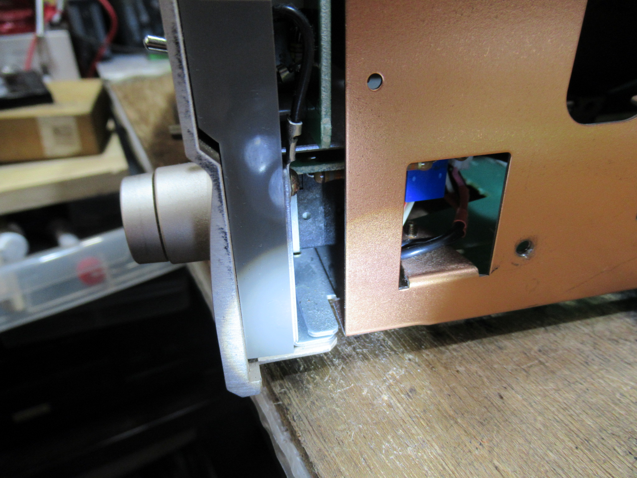 左右テープガイドの位置にズレが生じていたのは、このスライド部が固着していたため、人為的に処置したものと思われます。