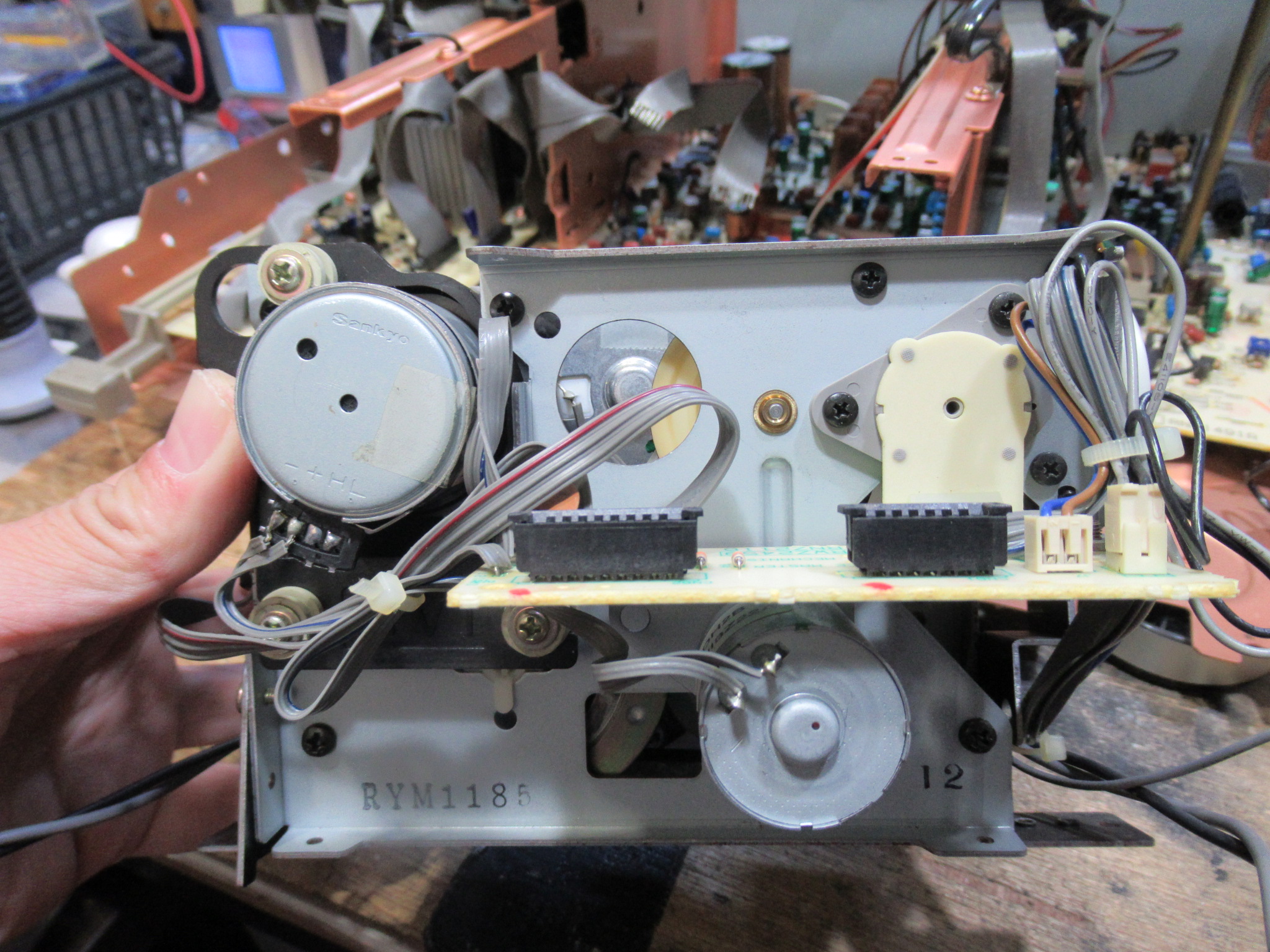 カバーを開けて点検を行います。異音の発生源は、キャプスタンモーターです。