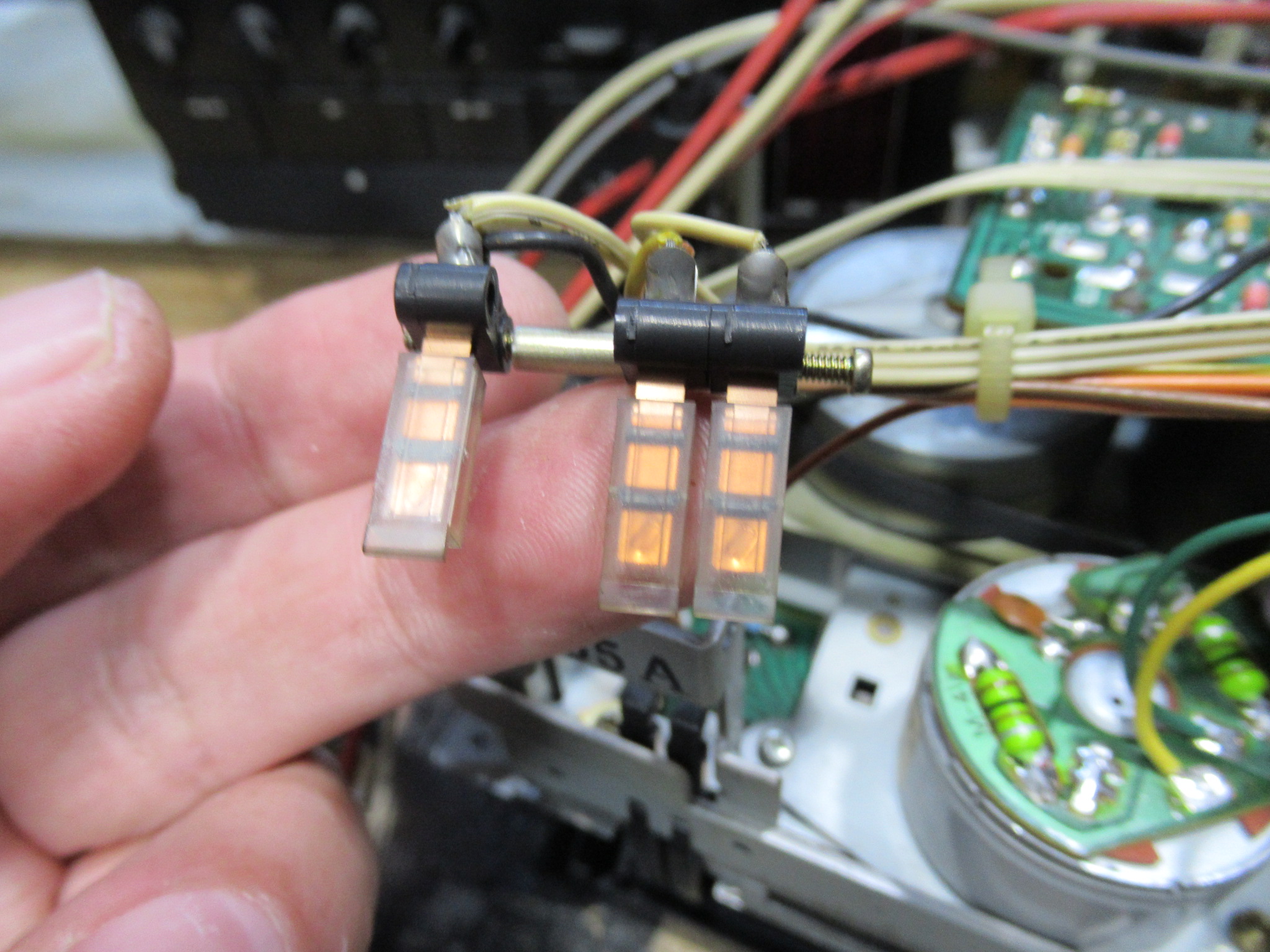 リューターと目の細かいサンドペーパーを用いて接点を慎重に磨きます。最後に接点復活剤を塗布し、ブラシを痛めないように治具を用いてブラシを広げながらバックパネルを組み付けます。