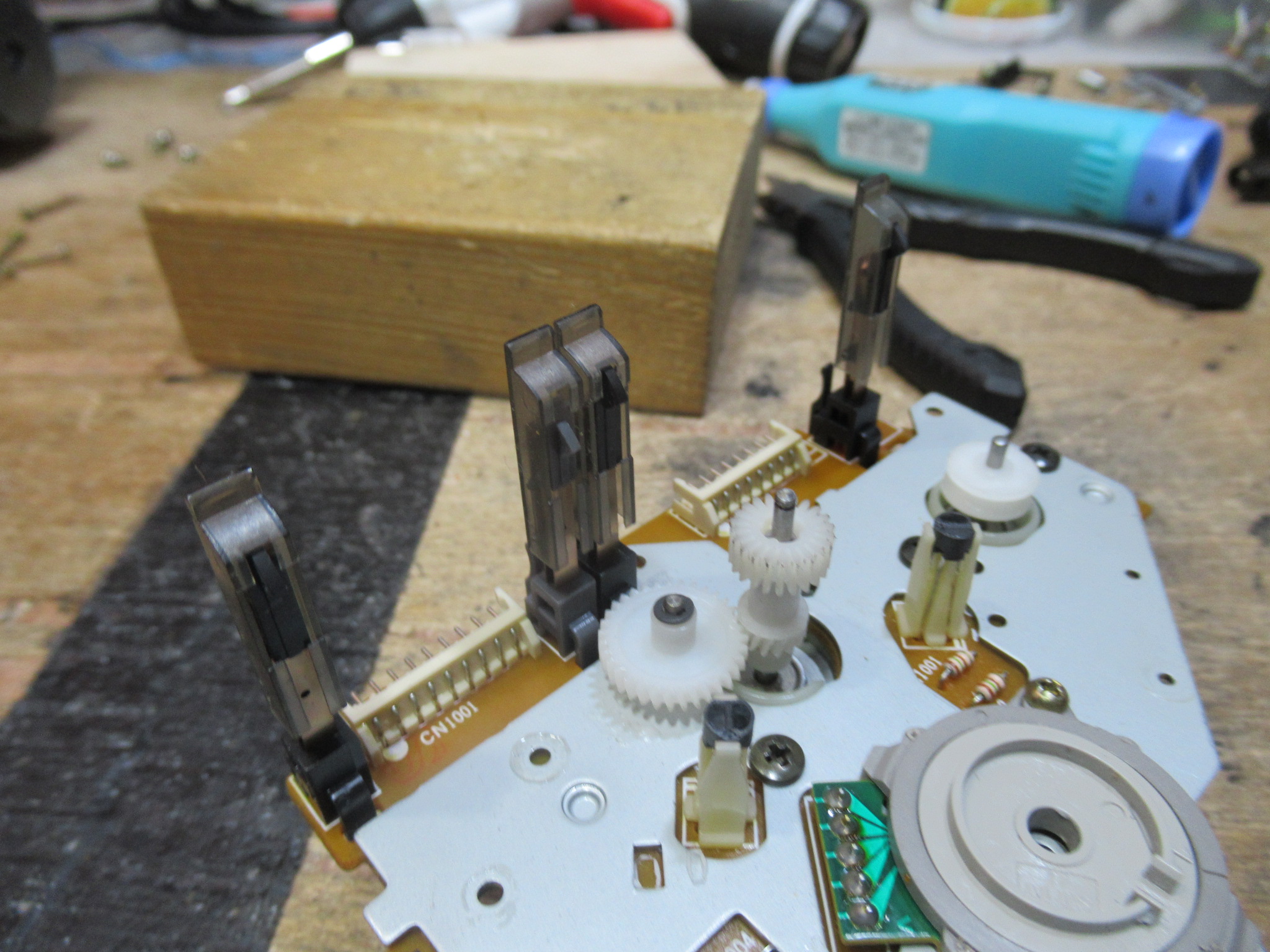 トレイは開きますが、ヘッドが上がらず再生不可です。