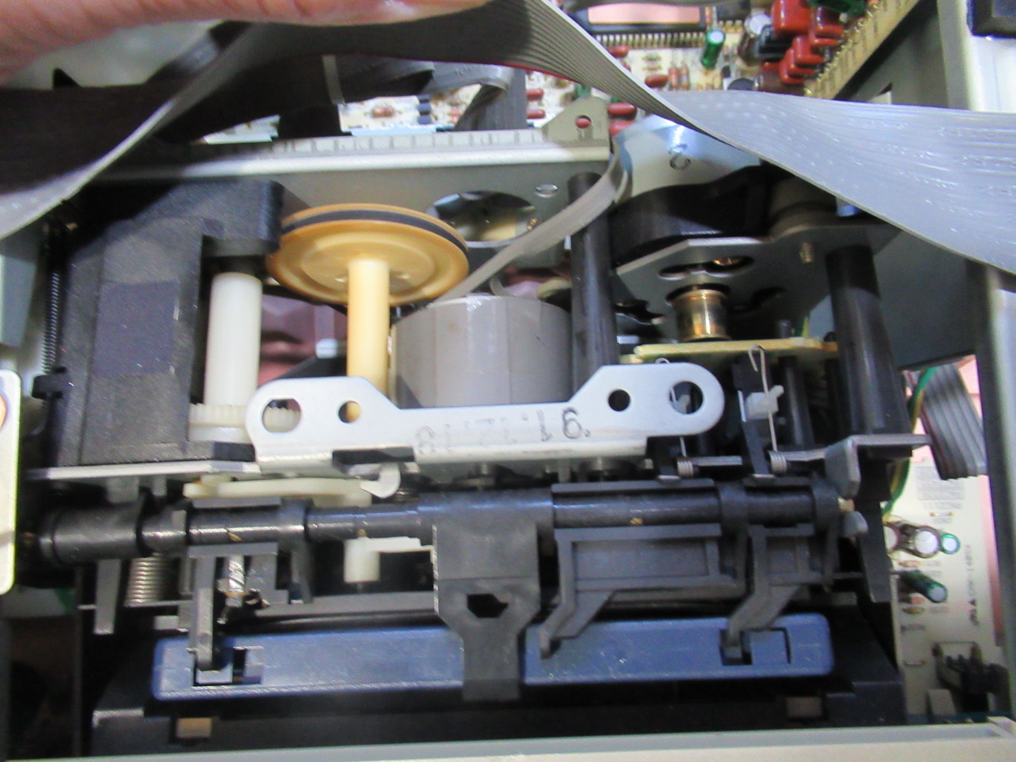 PIONEERのT-1000Sの修理依頼をいただきました。 10年ほど放置状態だったということです。 「WAIT」状態のまま、トレイが半開きで動きません。 早速カバーを開けました。 メカを観察します。 …
