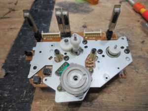 録音バランス点検のため、バイアス調整を行ったところ、キャリブレーションが不調です。ノーマルテープでは内部のトリマ調整で何とか対処できましたが、クロムとメタルがダメです。点検したところ、録音ヘッド劣化の可能性が高いことがわかりました。修理を行う場合、当初の見積額を大幅に上回りますので、修理の可否についてオーナー様に確認したところ、「録音は行わない」ということで、今回の修理はここまでとなりました。