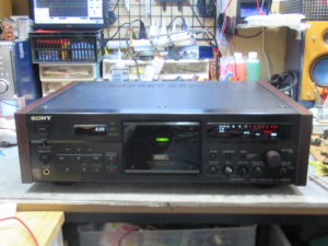 テープも一緒にお送りいただきました。このデッキでクシャクシャになったということです。それ以外にもリモコンが反応しない、左右レベルの狂いなどがあるということです。今回は、「リフレッシュメニュー」+「ピンチローラー交換」を行います。