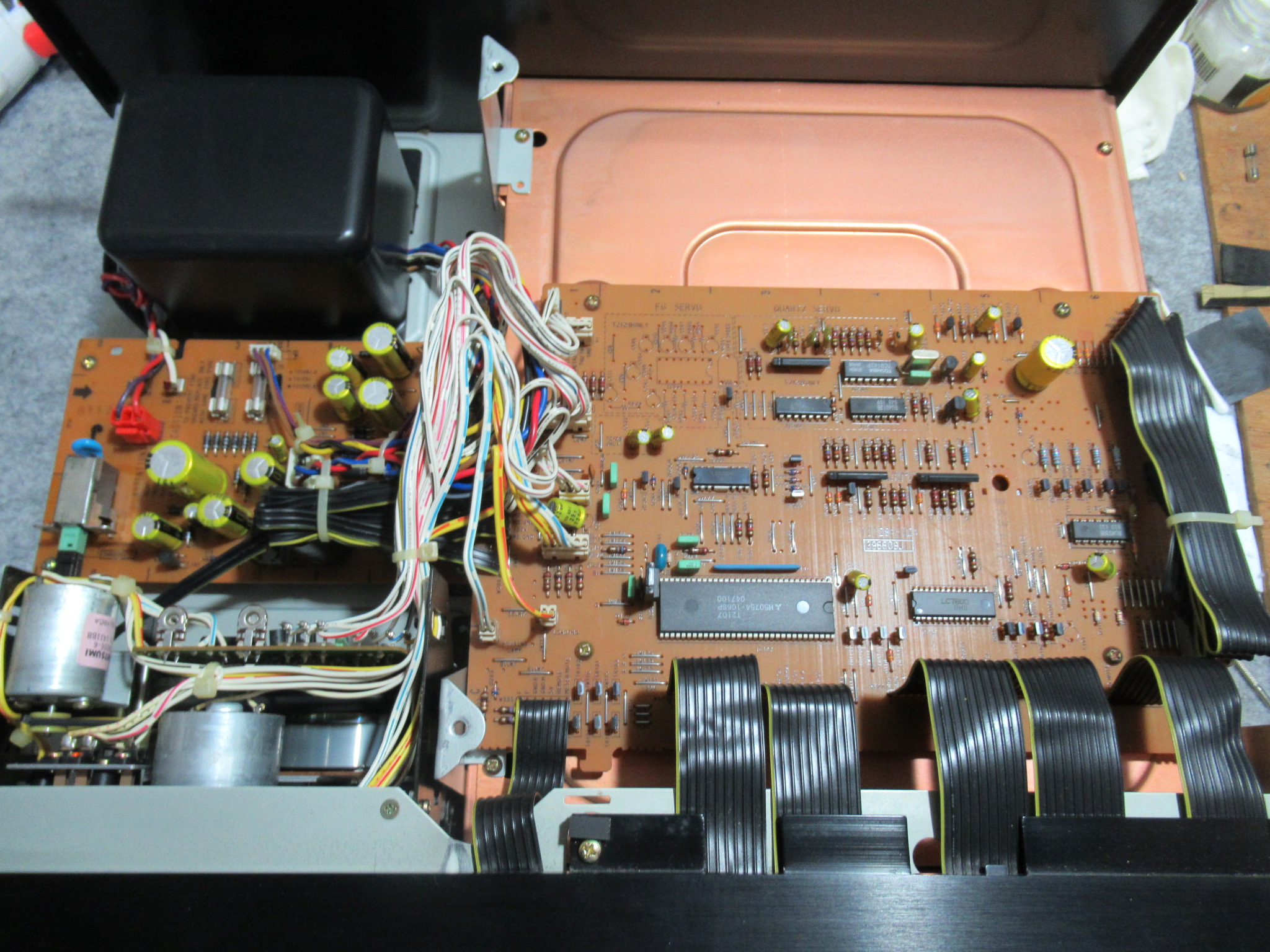 フロントパネルと底板も外し、ヘッドのコネクタを切り離します。