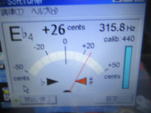 点検調整に移ります。315Hzの信号が記録されたテープを再生し速度の点検を行います。問題ありません。