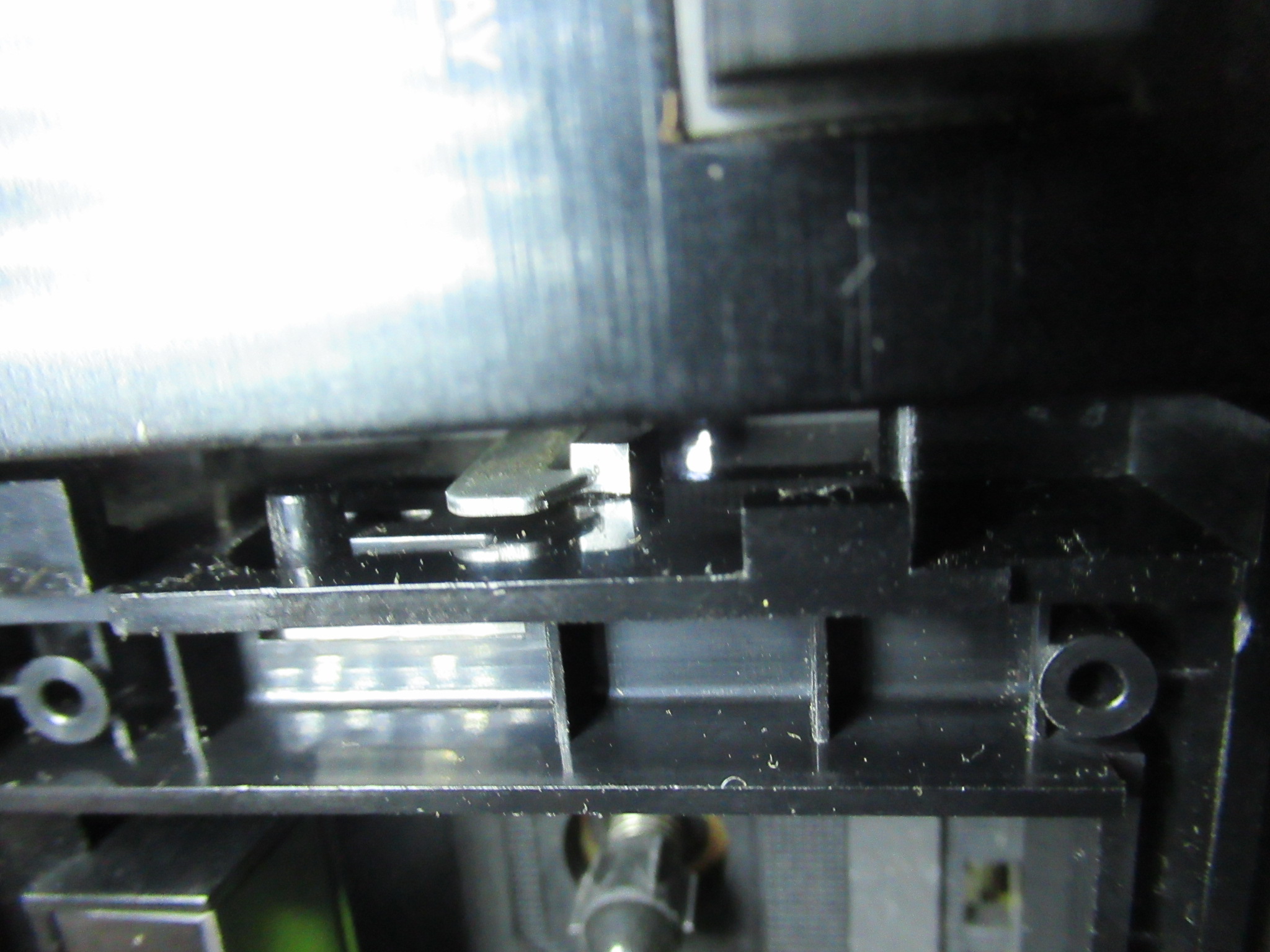 続いて、トレイのロックが外れやすい件については、さきほどのレバーの爪が掛かる箇所が摩耗していたことが原因ですので、