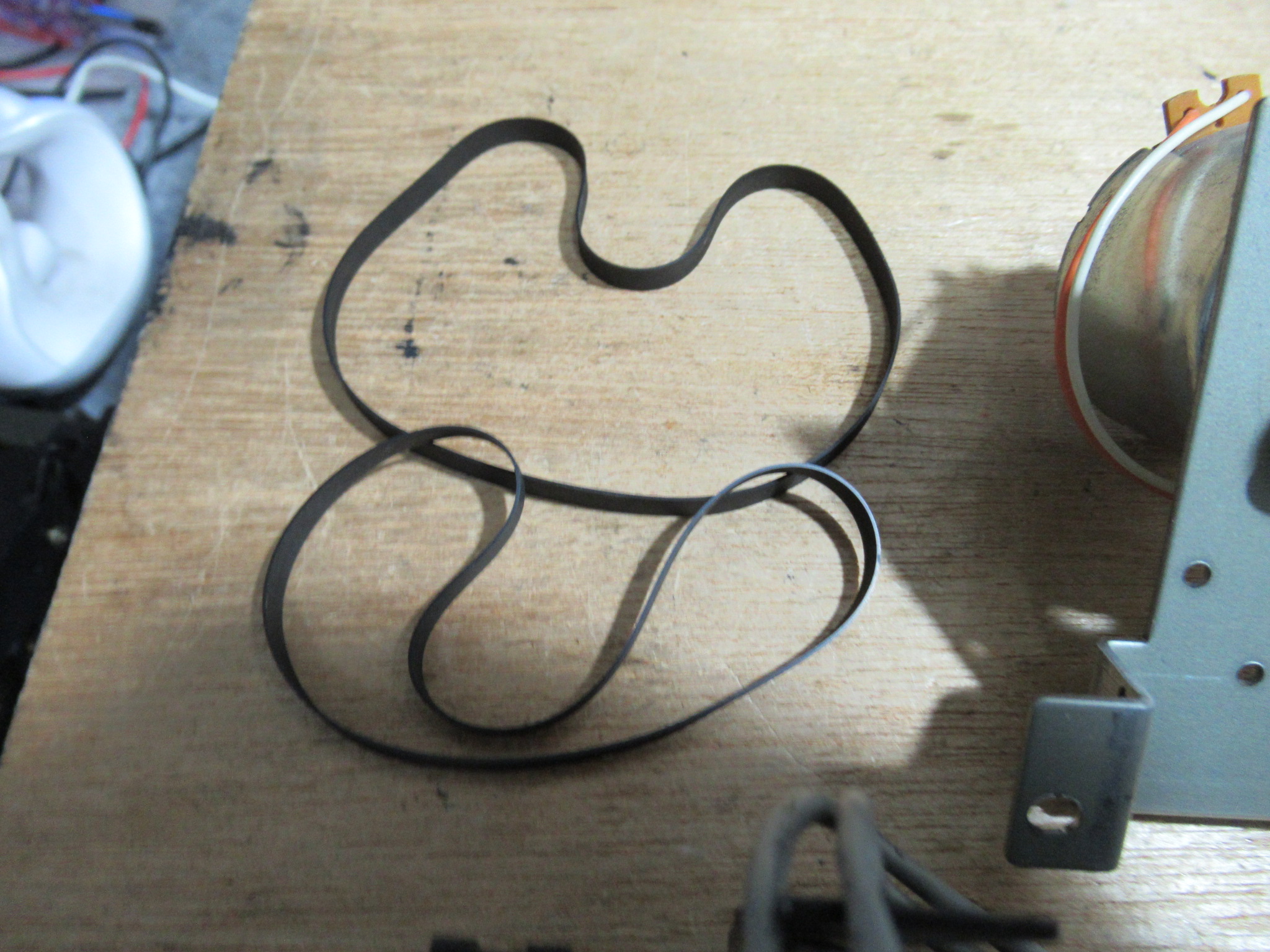 キャプスタンベルトが伸びています。この機種は、キャプスタンの回転を利用してメカのモードを切り替えますので、それが原因で故障したようです。