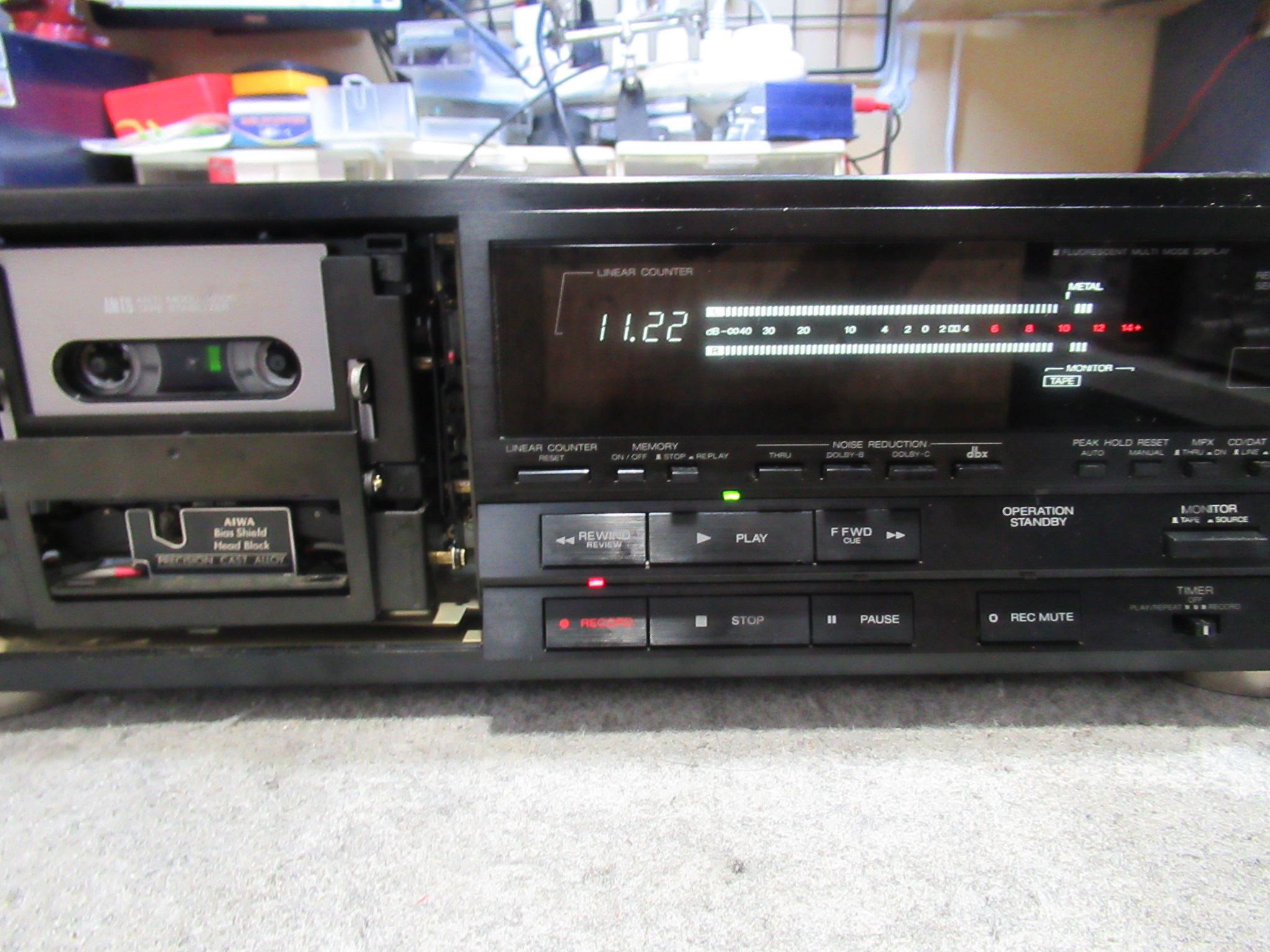 AIWA製EXCELIA XK-009です。 「テープ走行しない」「テープが取り出せなくなった」ということです。ただし、テープはカバーを開けて取り出せたということです。 再生も早送り巻き戻しも「キュー …