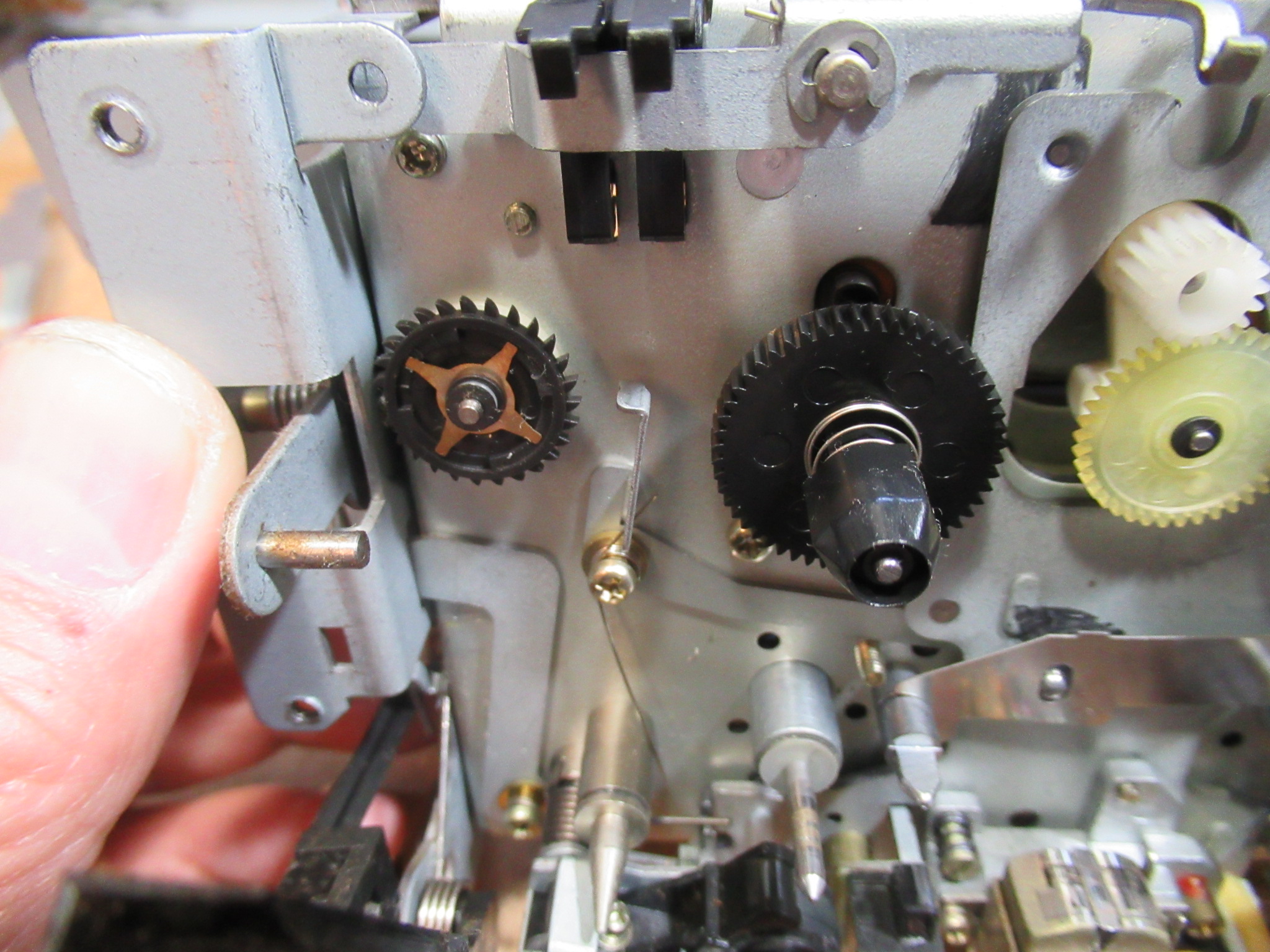 不具合の状況ですが、事前にお聞きしていたのは、「レベルメーターが点灯しないこと」、「カウンタ表示が暗いこと」、「テープ走行がすぐに停止すること」ということでした。しかし、メーターはご覧のとおり点灯しませんでしたが、