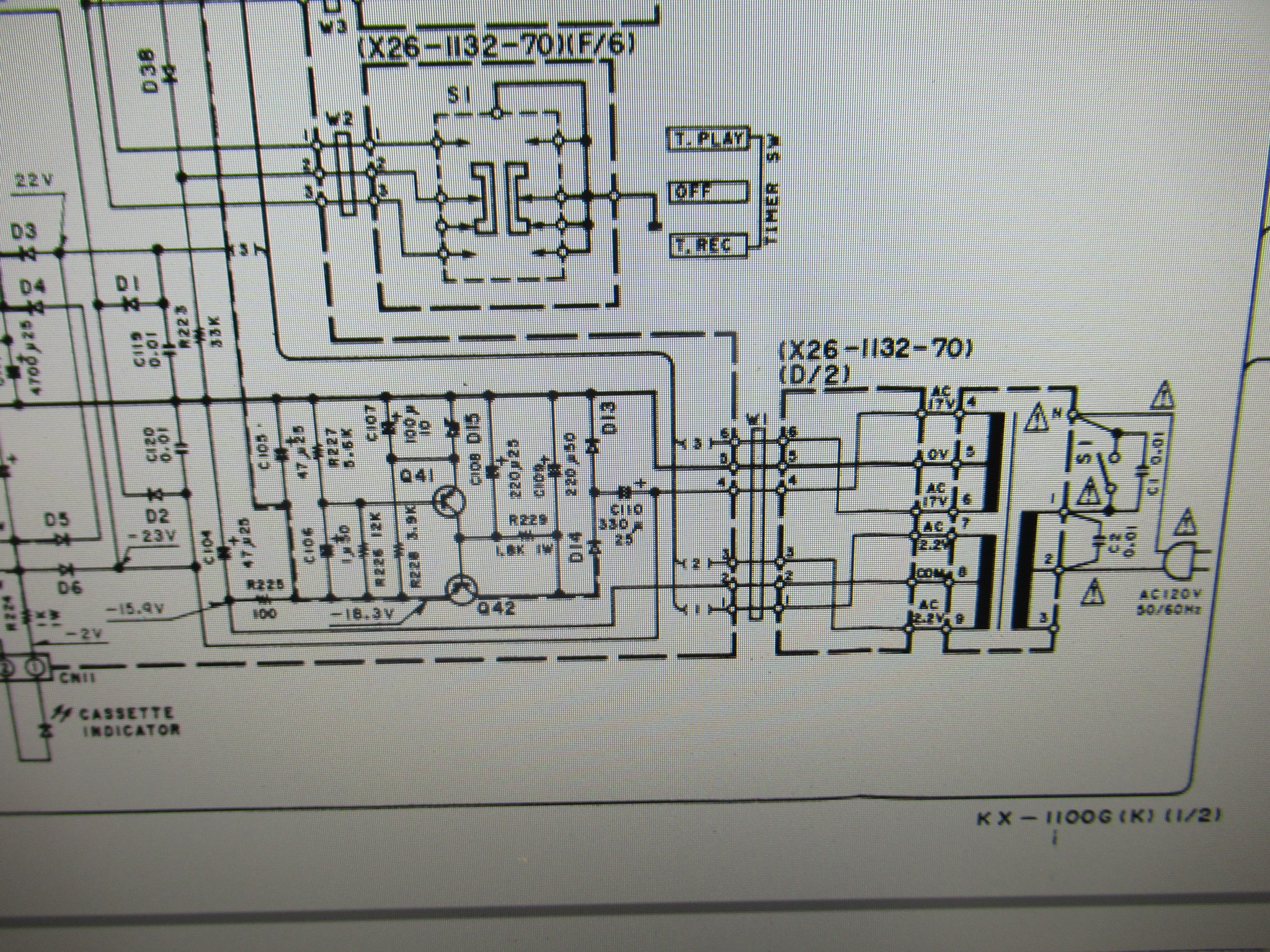回路図を確認すると、メーター回路には-18.5Vが供給されています。しかし、テスターで測定すると2V程度しかありません。元を辿っていくと、電源部の電解コンデンサーC107(100μF/10V)がショートモードで故障していることがわかりました。この件については、以前のブログに記載していますので、お時間のある方はご覧ください。
