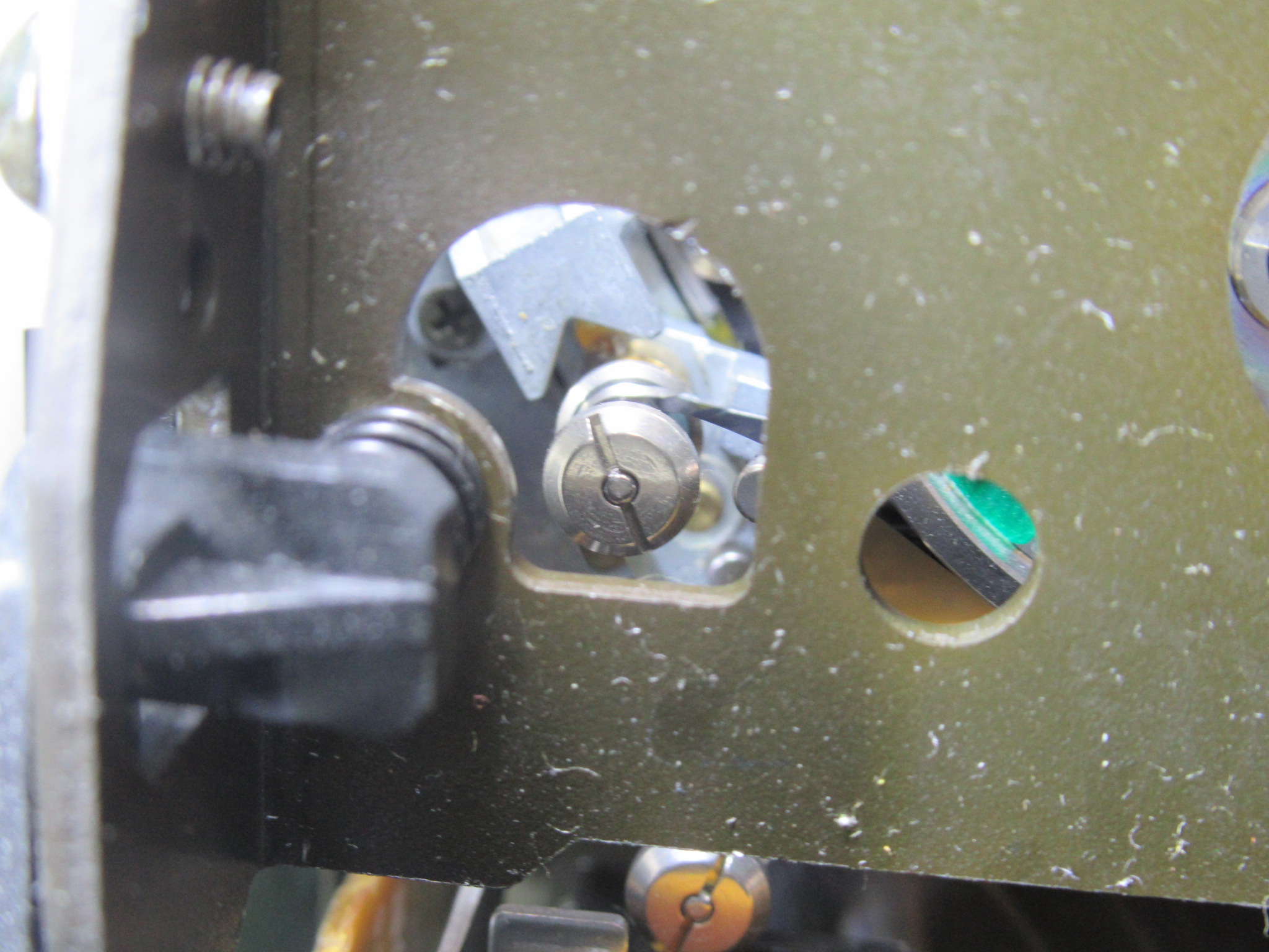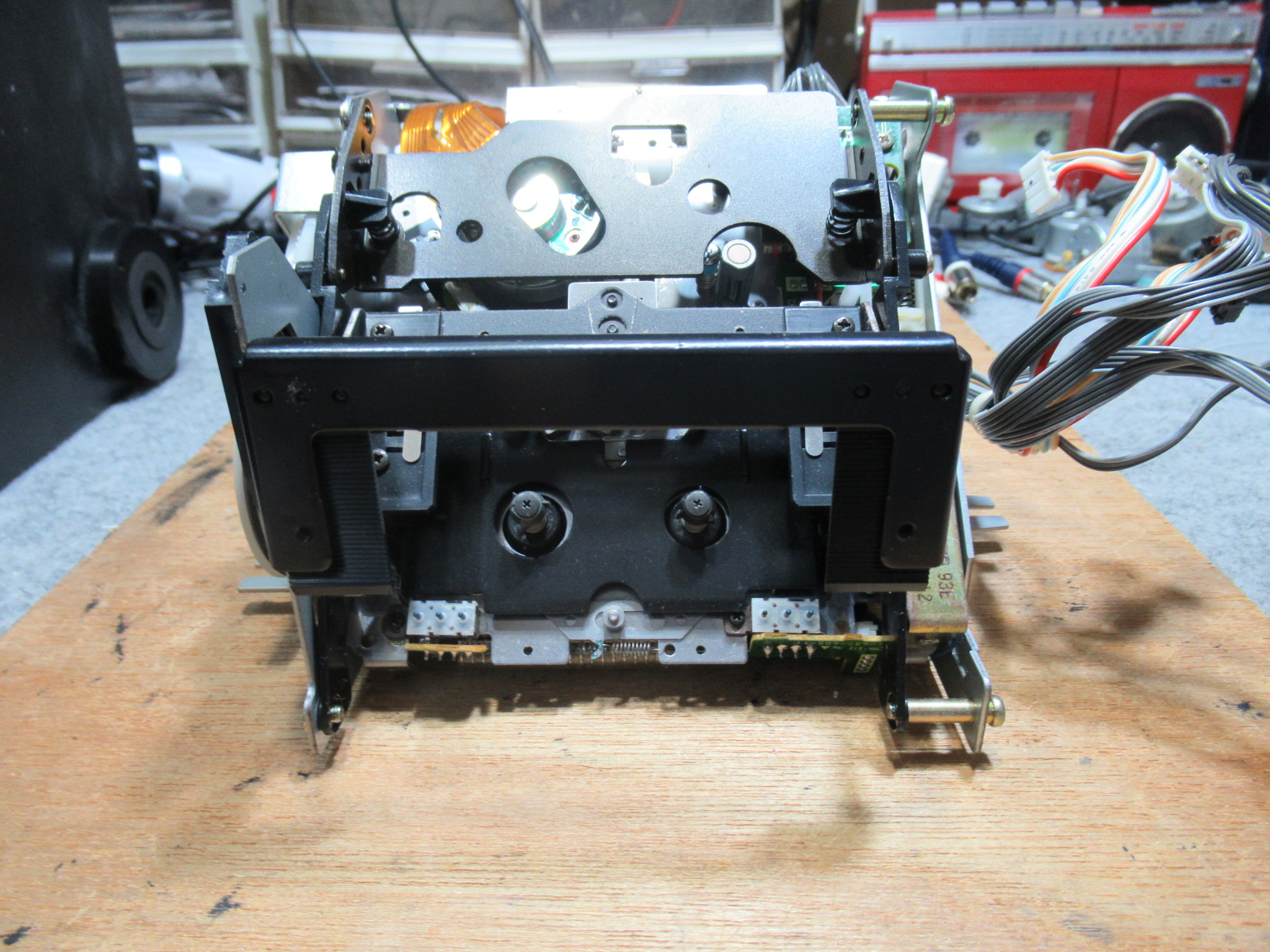 左側のテープガイドが所定の位置の少し手前で止まっています。メカの固着です。