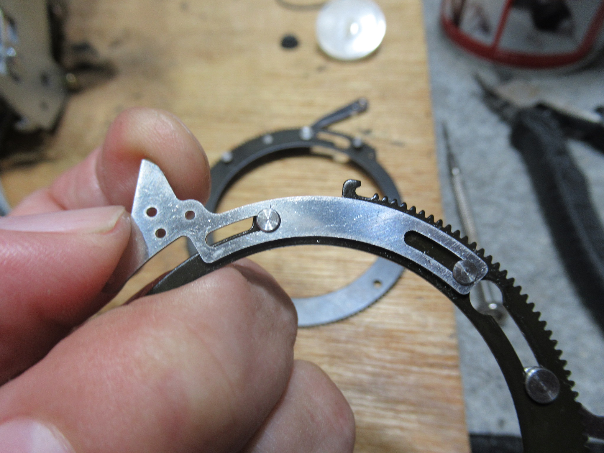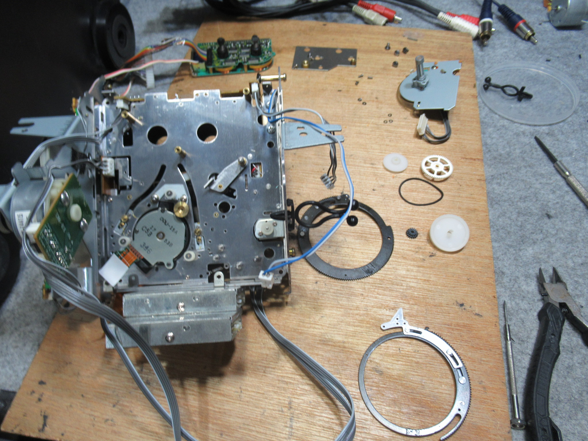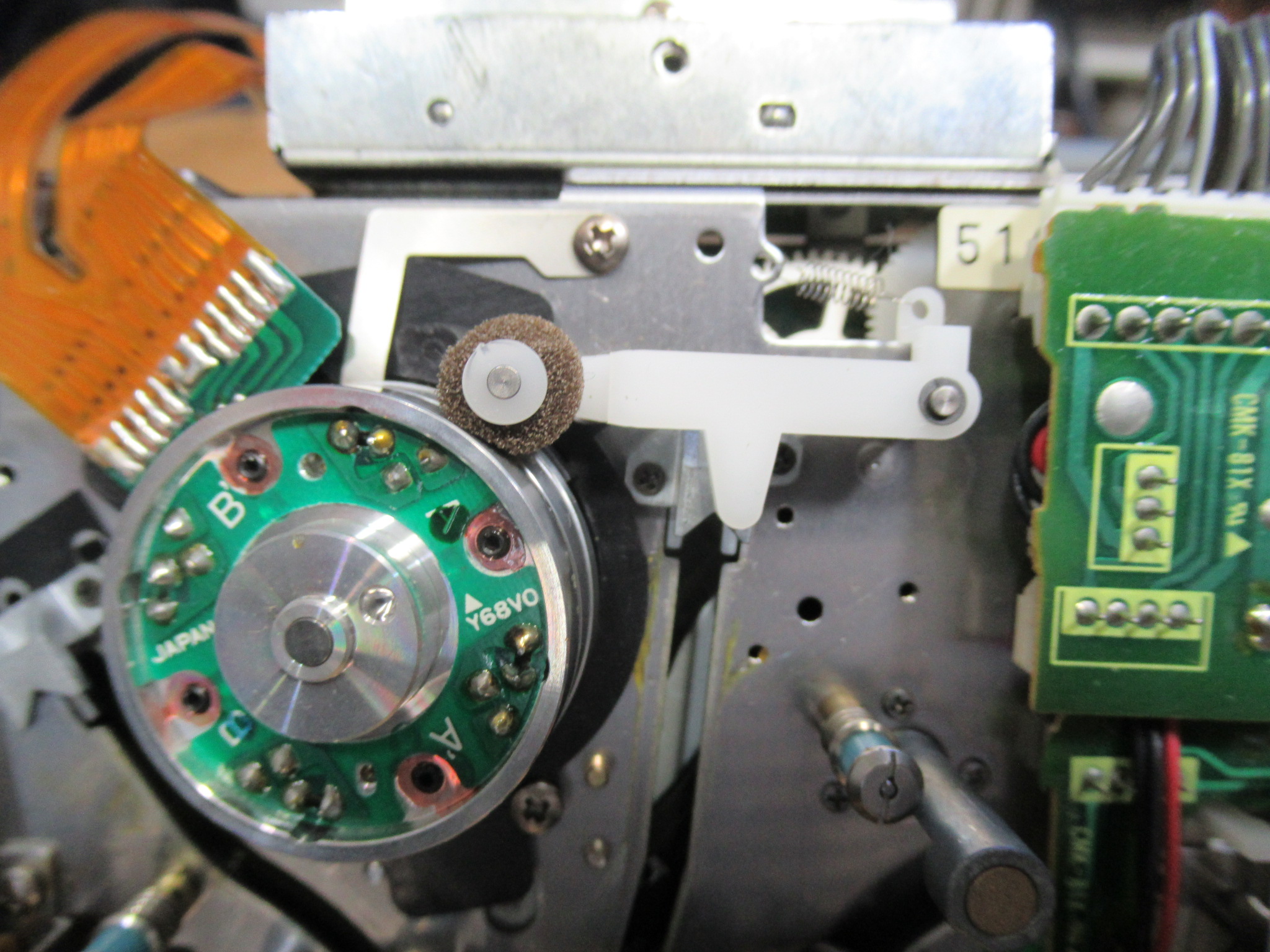 テープガイドを駆動するリングギヤです。可動部に塗られたグリスが固まっています。