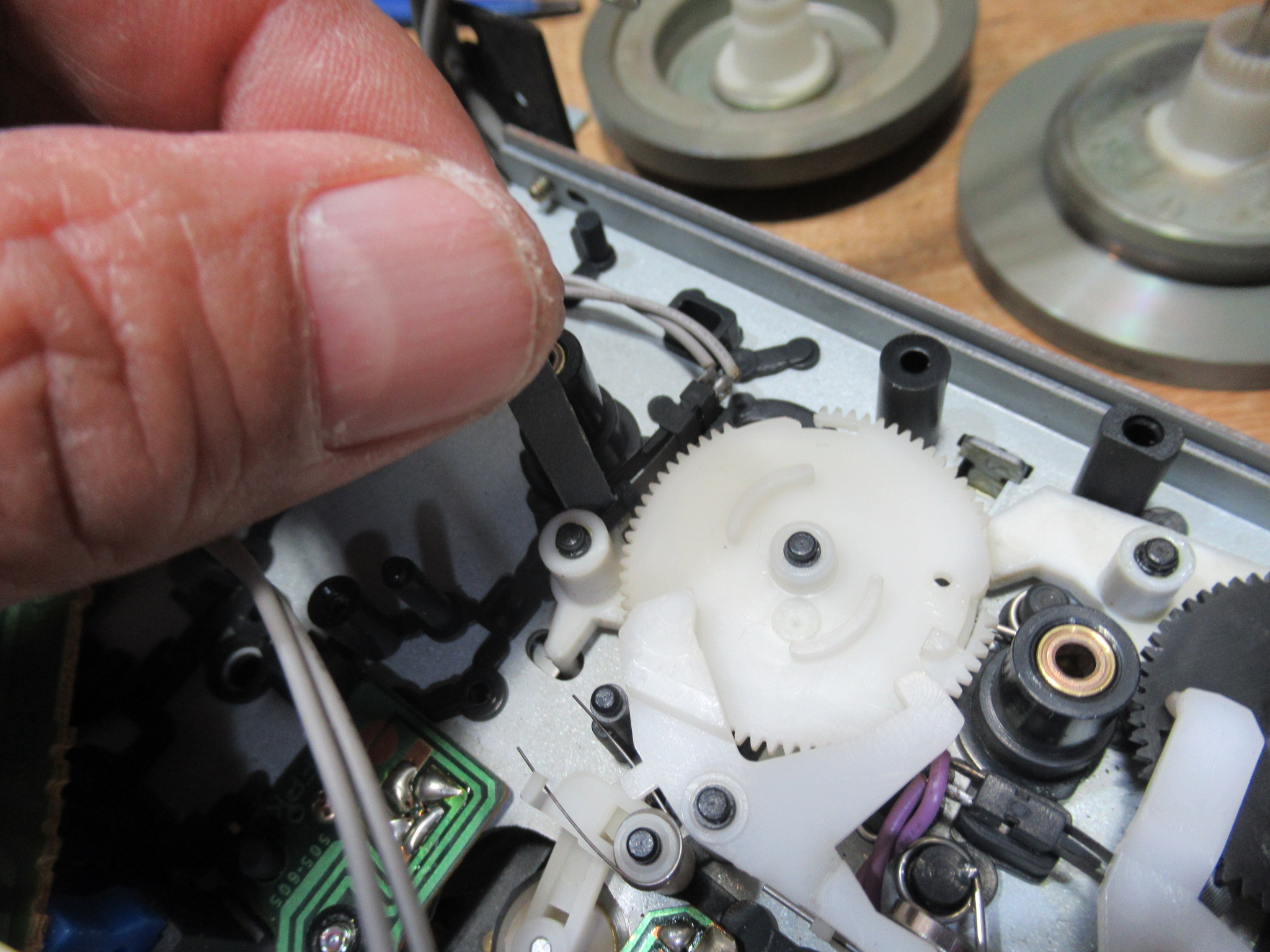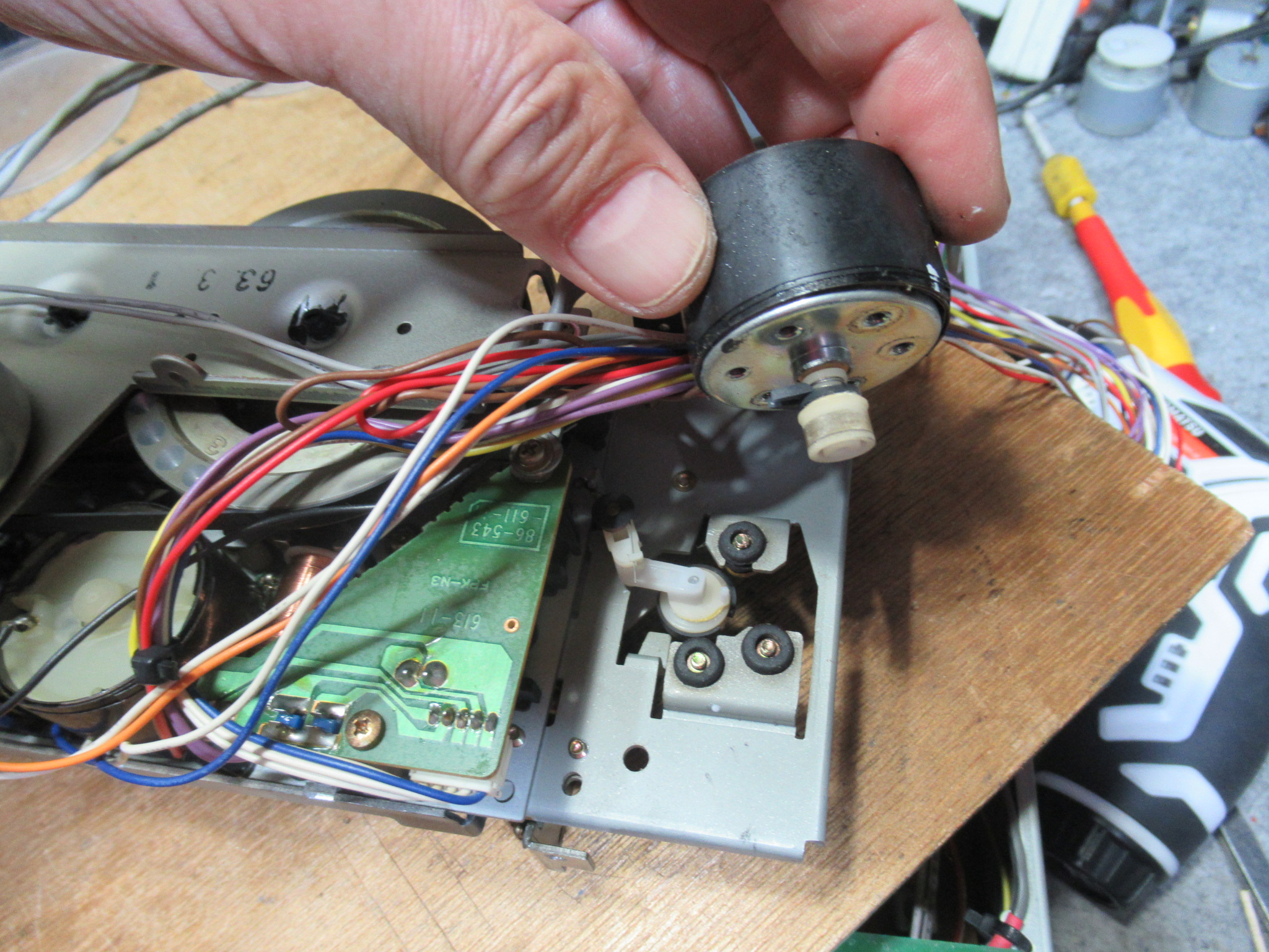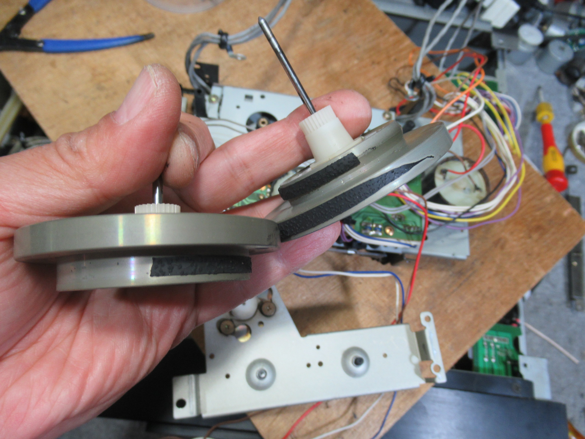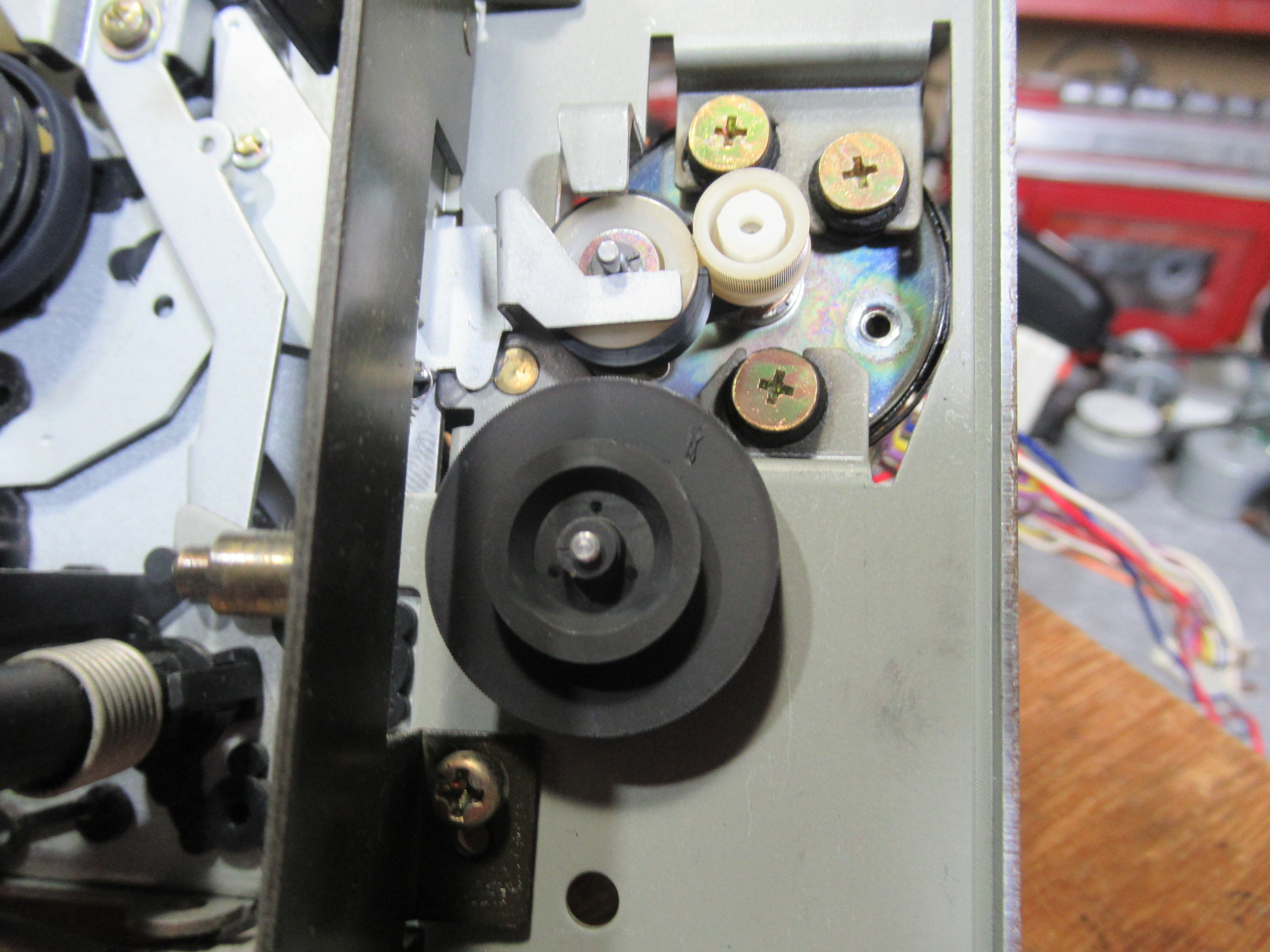 リールモーターを取り外すと、早送り巻き戻し用のアイドラーにアクセスすることができます。