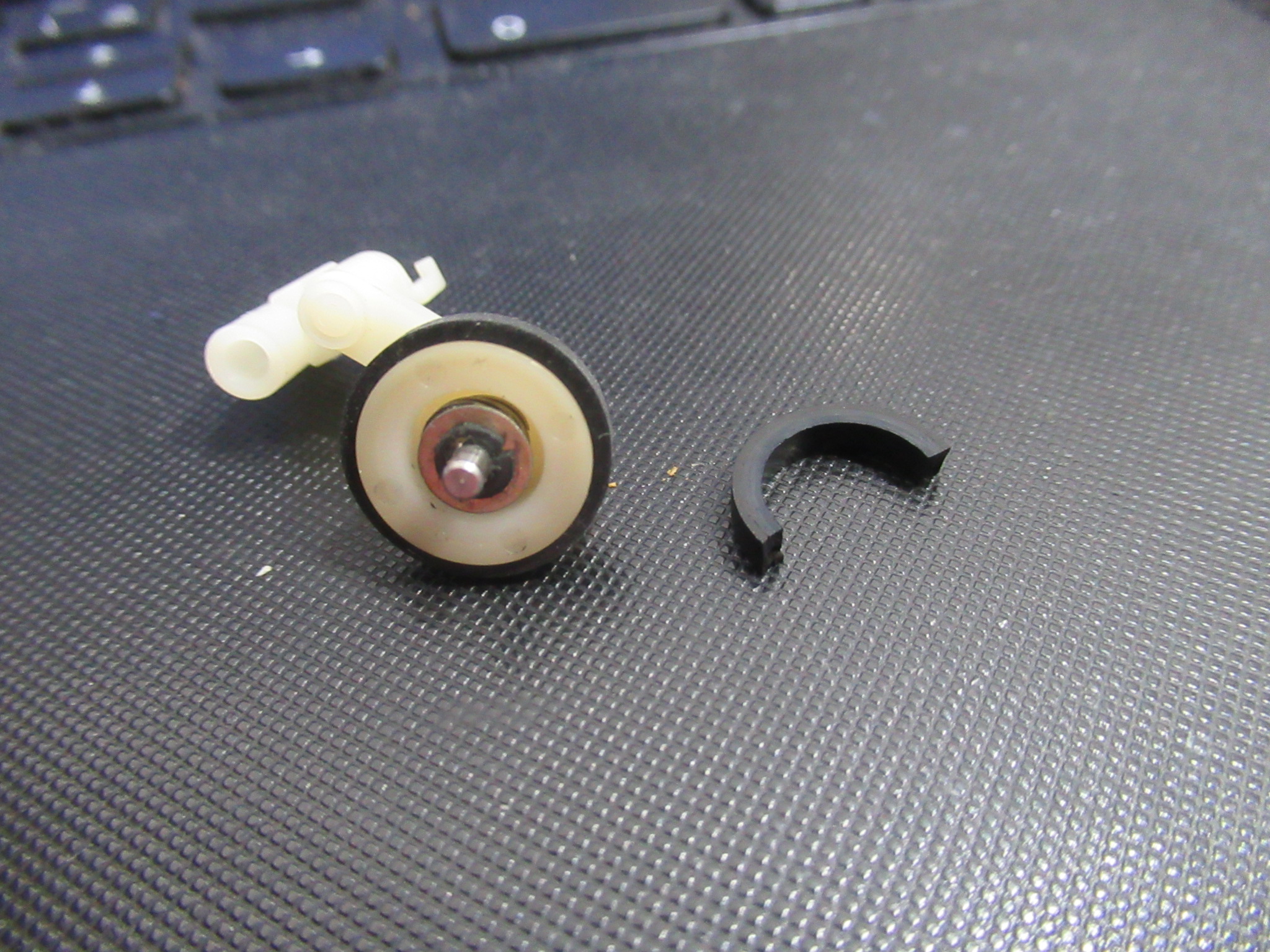 劣化して既に破損していたアイドラーゴムを交換します。