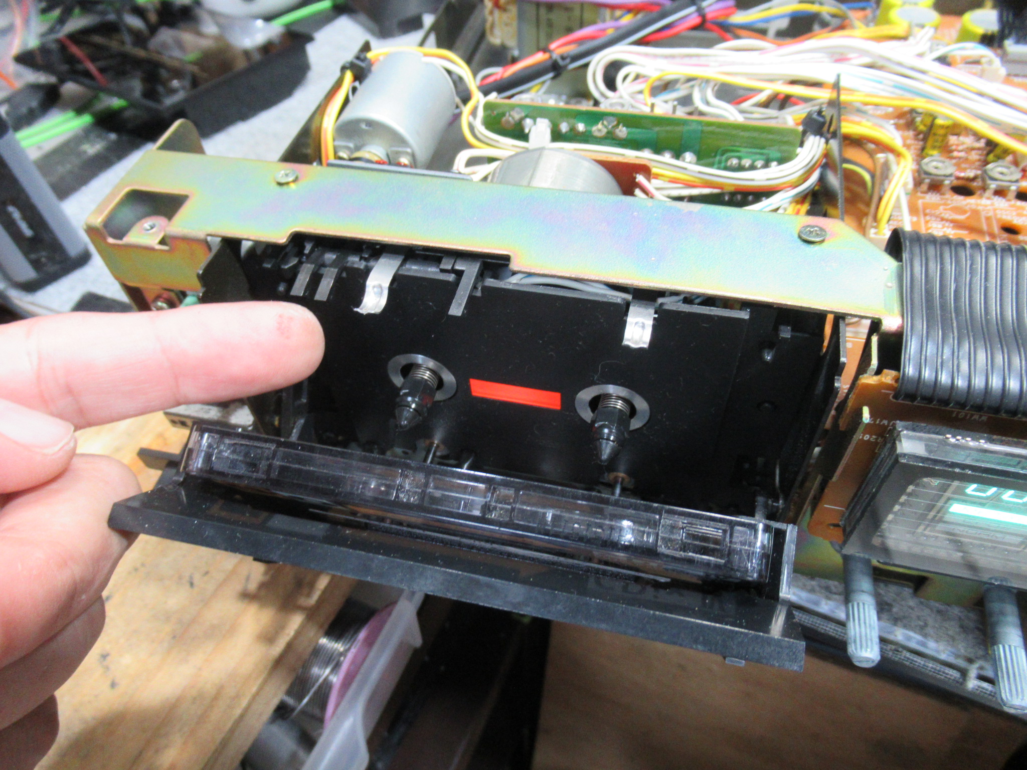 リッドが閉まり切らないのは、オートセレクタのレバーがカセットと干渉しているためです。