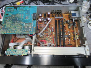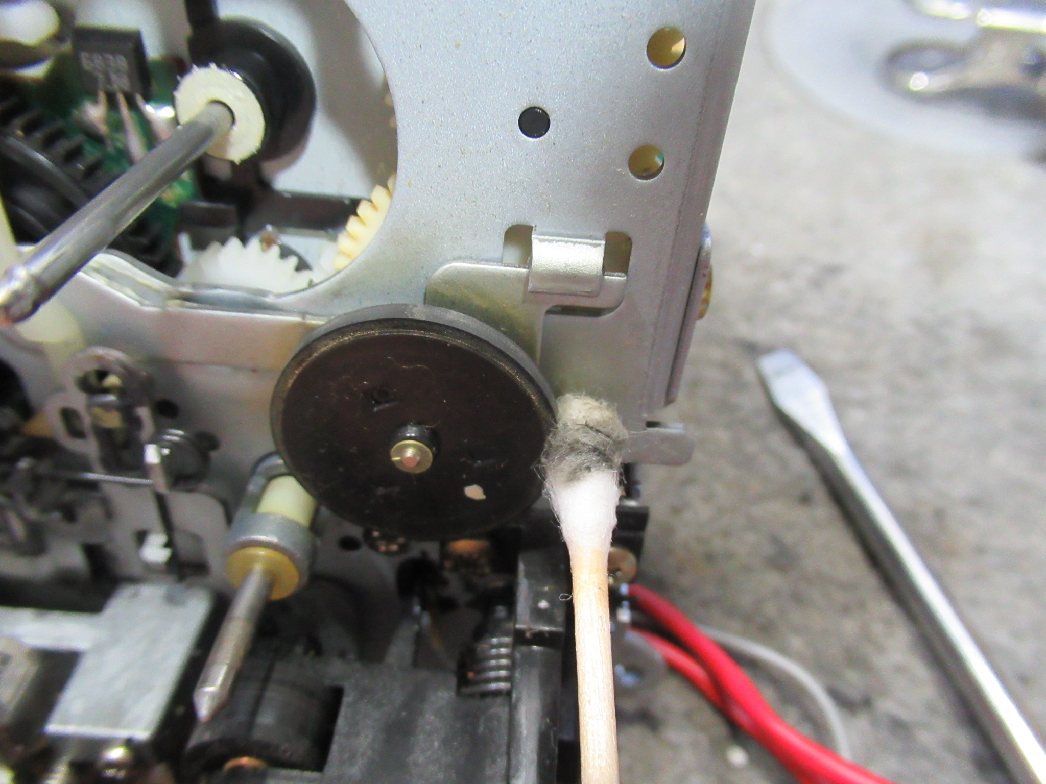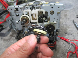 再生用のアイドラーゴムやピンチローラー、ヘッド、キャプスタンをクリーニングします。