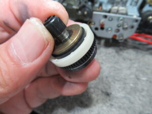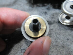 写真中央の再生用のスリーブに割れが無いことを点検します。