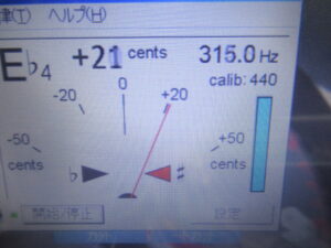 315Hzの信号が記録されたテープを再生し、速度が許容範囲内に収まっていることを確認します。通常は、キャプスタンの摩耗等により僅かに遅くなりますが、珍しくジャストでした。