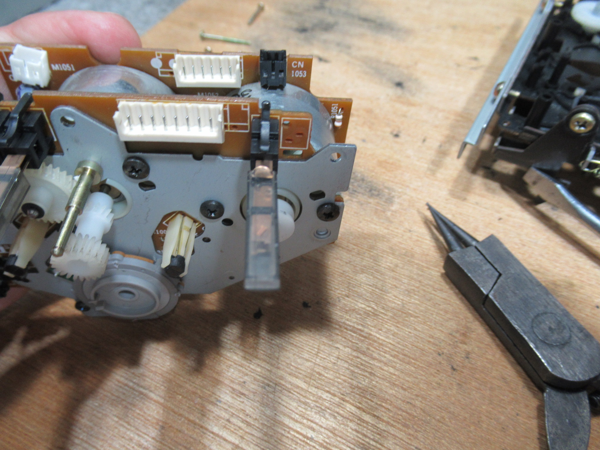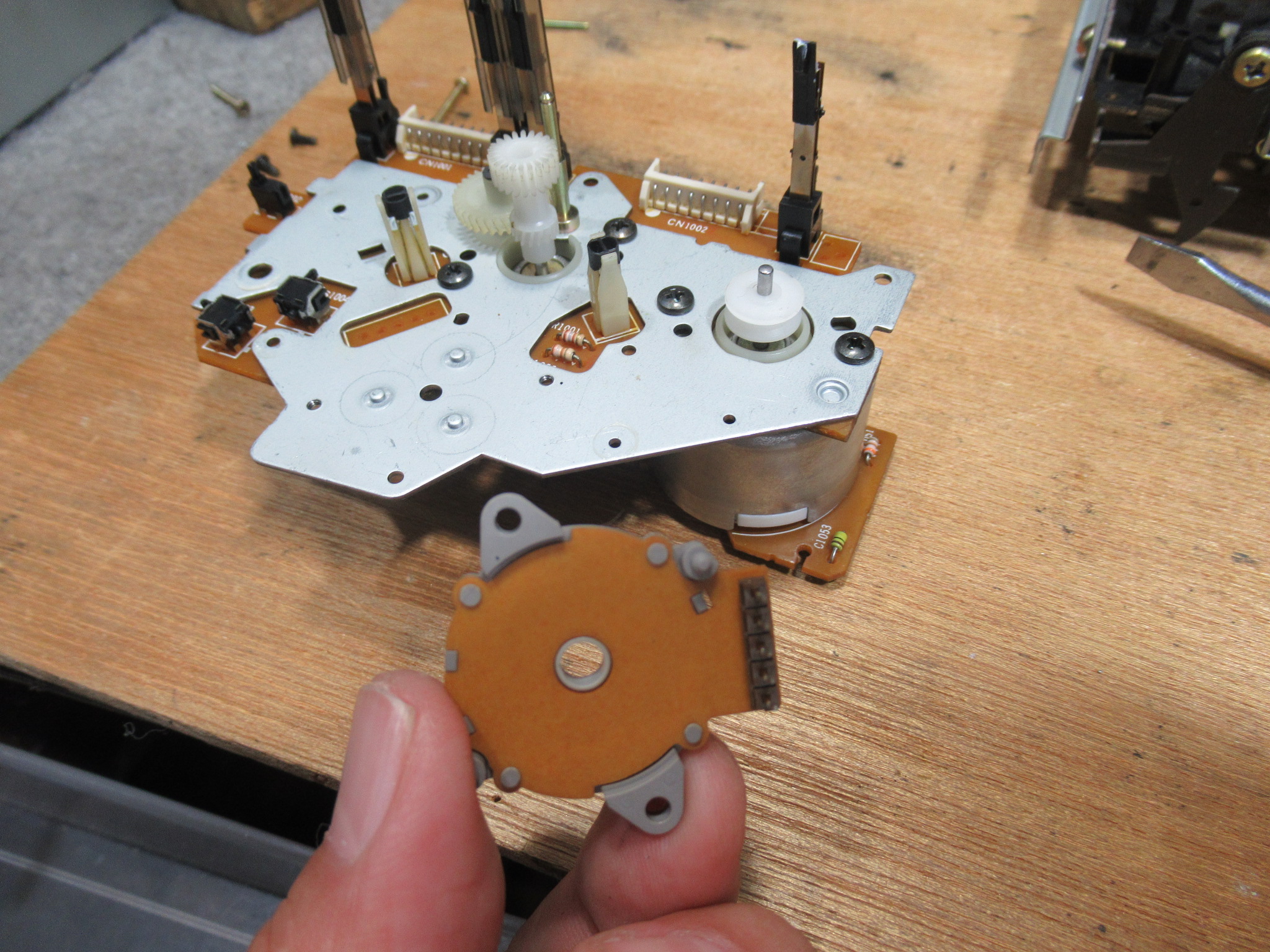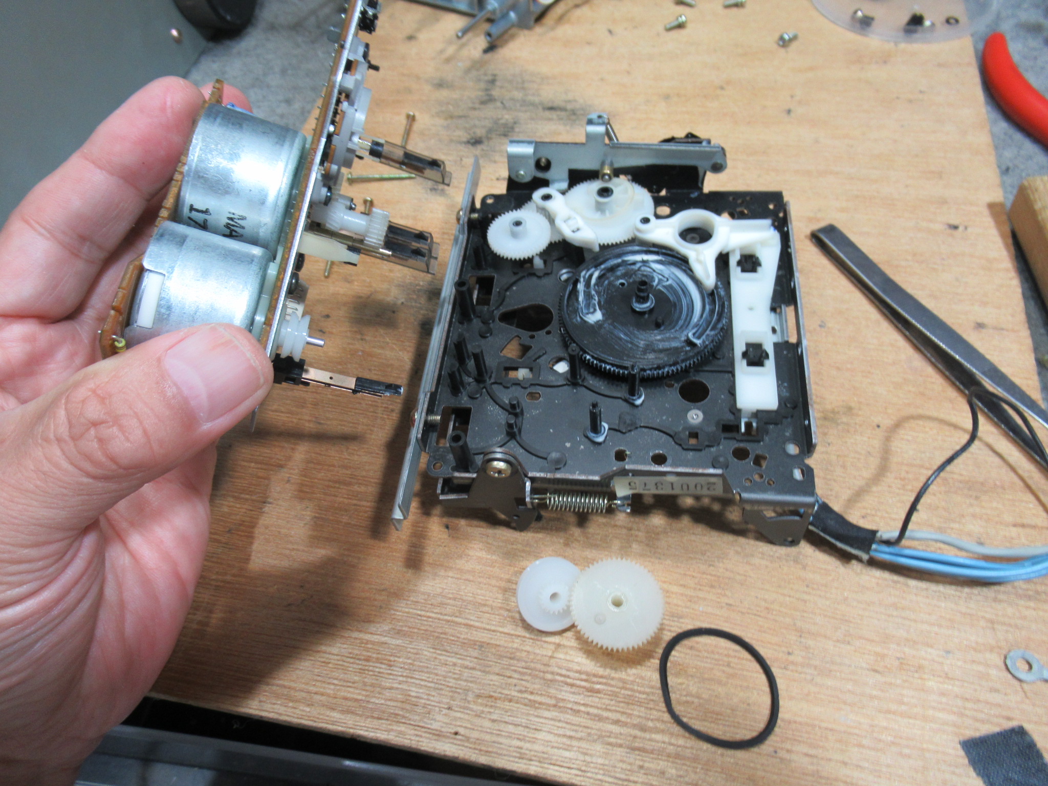 左側のピンチローラーは社外品のものと思われますので、過去に修理歴があるようです。
