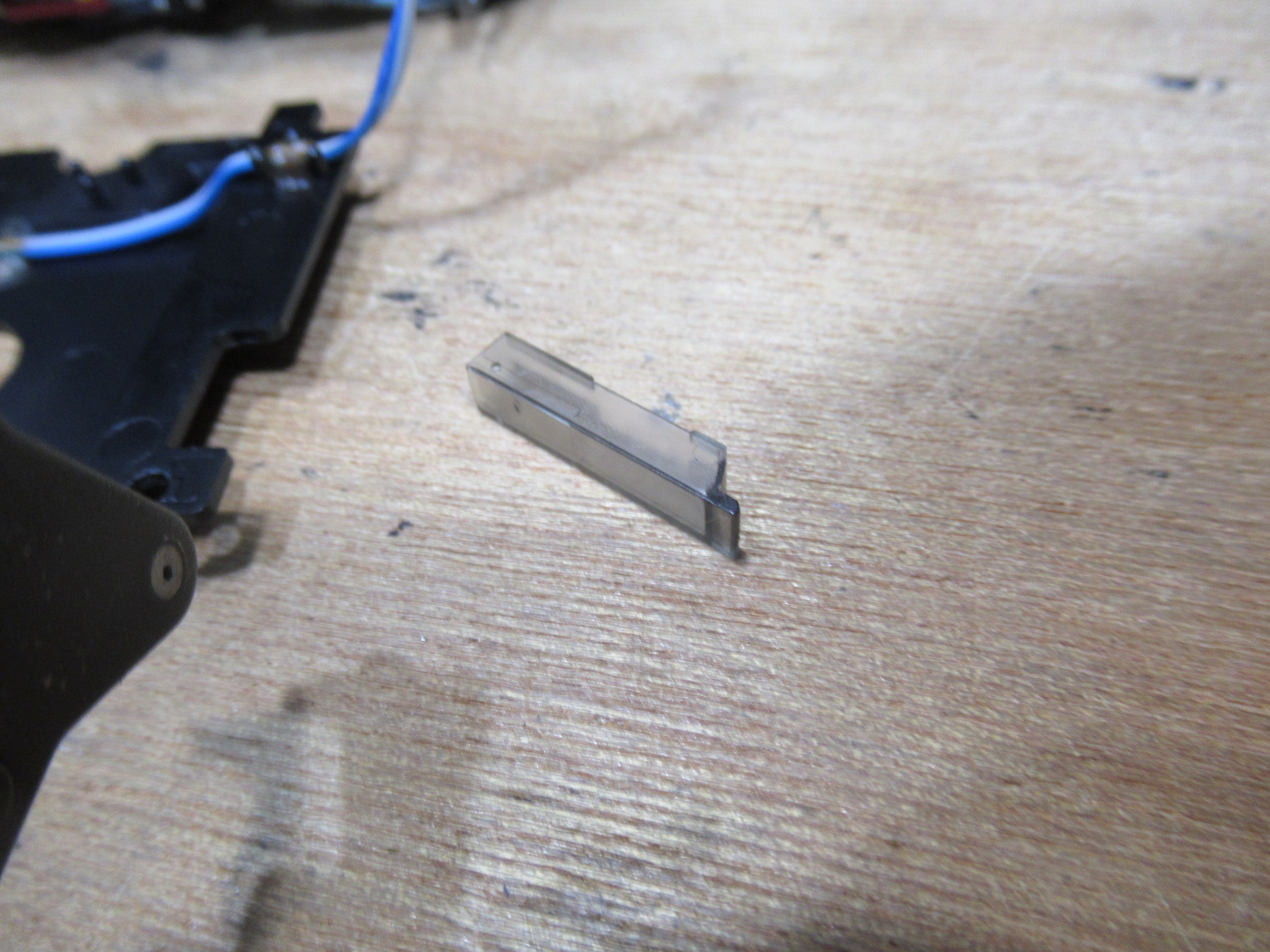 パーツが勝手に脱落しました。オートセレクタ用のスイッチのカバーです。固定するツメが折れたためですので、後ほど処置します。
