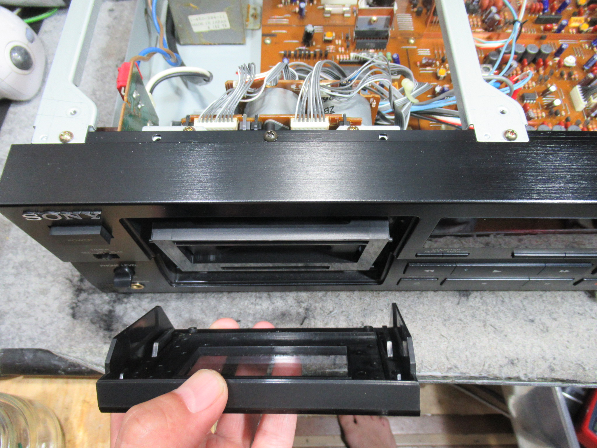 SONYの3ヘッドデュアルキャプスタンカセットデッキ、TC-K222ESLの修理依頼をいただきました。 5年ほど前から不動となり、メーカーに修理を断られてそのままの状態だったということです。 イジェク …