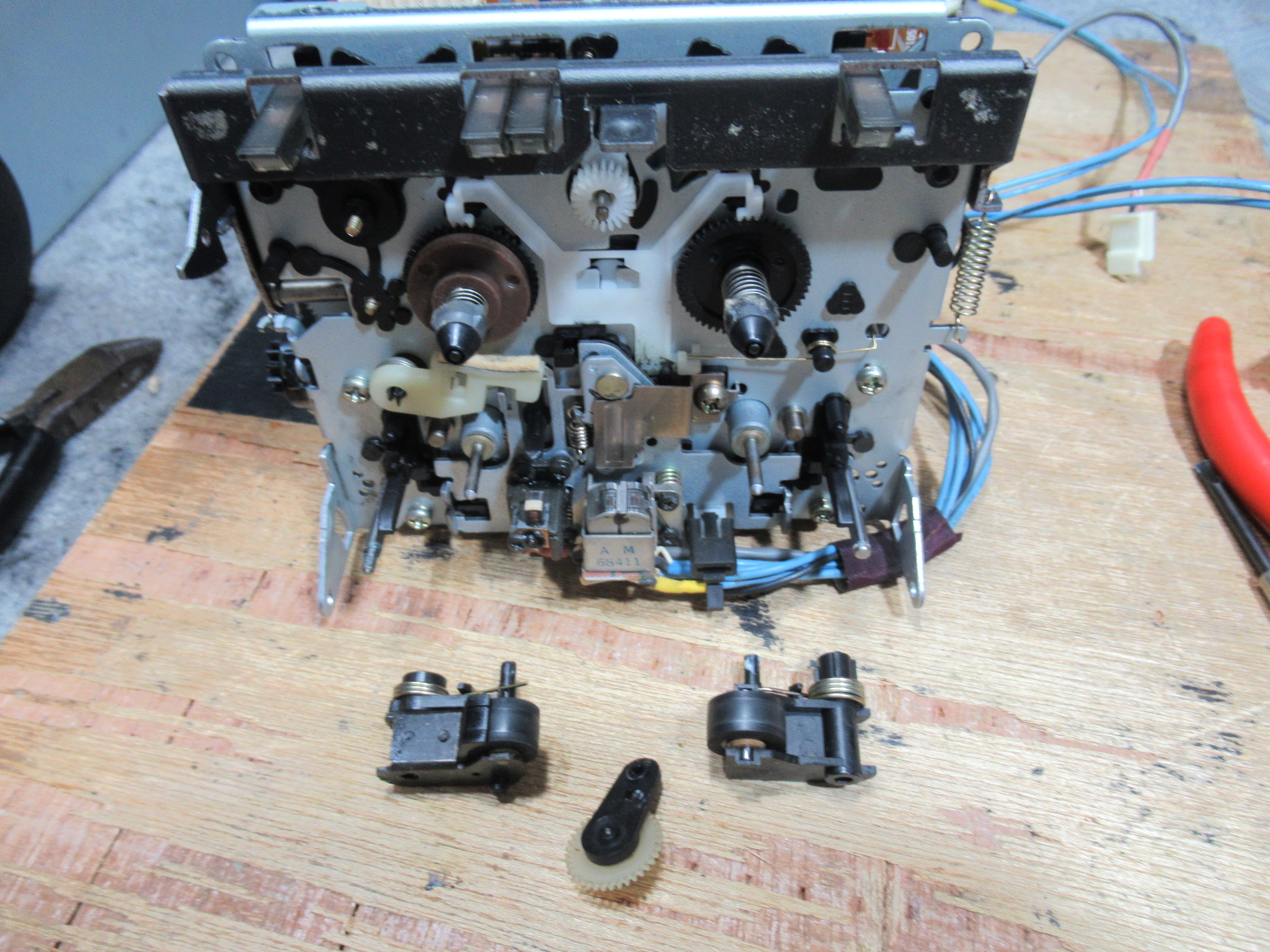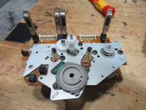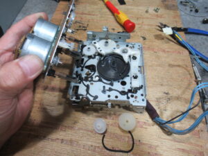 TC-K222ESLの不動品を入手しました。 キャプスタンモーターも回転していませんし、それ以外もまったく反応がありません。 早速メカを取り出して状態を確認します。 ウイークポイントのアシストモーター …