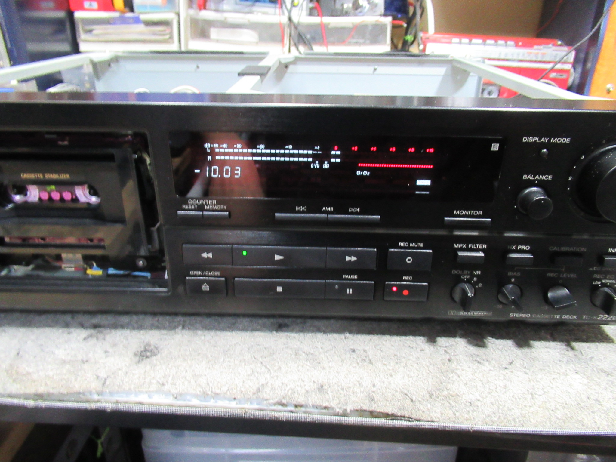 SONY製3ヘッドデュアルキャプスタンカセットデッキ、TC-K222ESLです。かなり長期間、眠りについていたということです。
