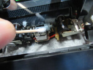 抜け止めも破損していましたので、小さなビスを埋め込み、正規な状態に組み直します。