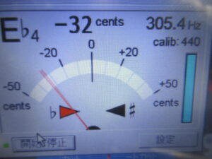続いて315Hzの信号が記録されているテープを再生して速度を測定します。3%遅くなっていますので、聴感で気がつくレベルです。