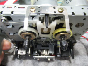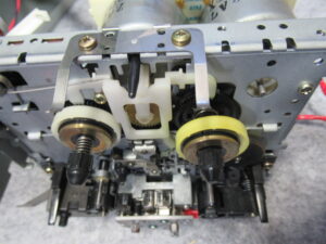 はめ込み部が割れたため、スプリングの力で抜けてしまったというのが故障の原因です。ビクターのTDシリーズのメカはほぼ共通ですが、この不具合は、何故かこの機種に多発します。