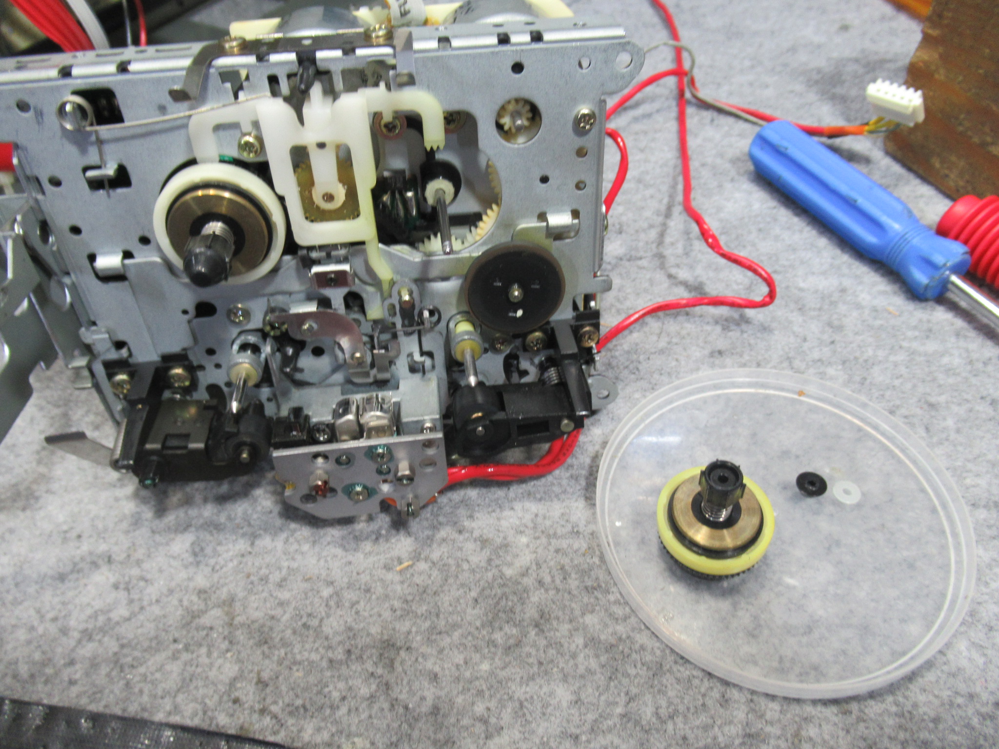 はめ込み部が割れたため、スプリングの力で抜けてしまったというのが故障の原因です。ビクターのTDシリーズのメカはほぼ共通ですが、この不具合は、何故かこの機種に多発します。