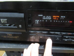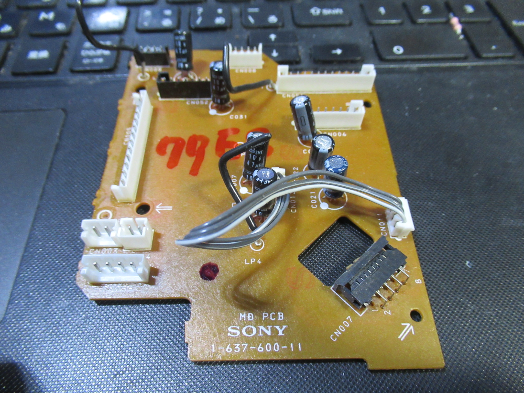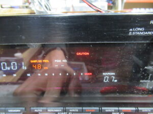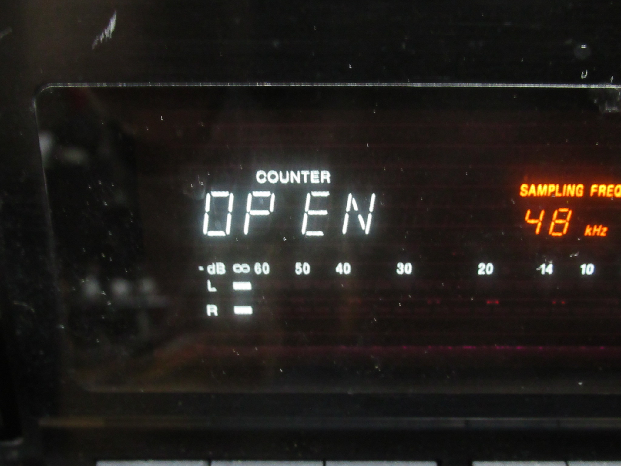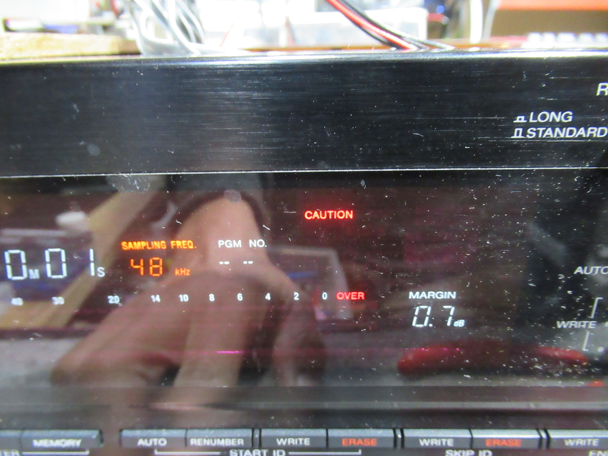 一瞬、再生が開始したと思ったら、即停止し、「OPEN」表示が出て、「CAUTION」状態になりました。こうなると一旦電源を切らないと操作を受け付けません。何度繰り返しても同じです。ドライブ基板の故障と思い、