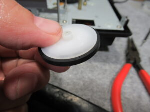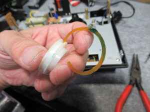 アイドラーゴムが加水分解で溶けています。こういったウレタンゴムは、耐摩耗性に優れていますが、加水分解しやすいという最大の欠点を有しています。
