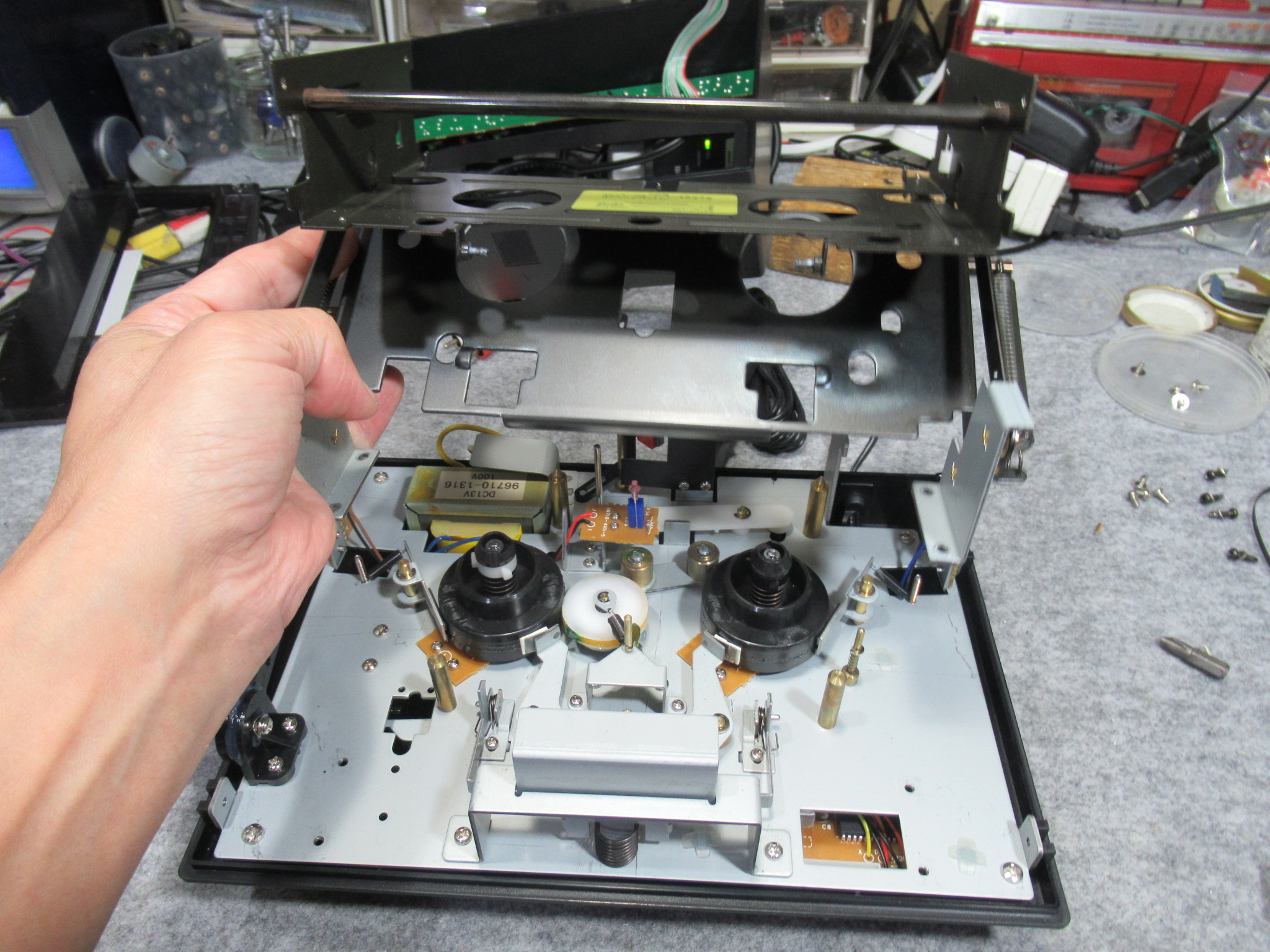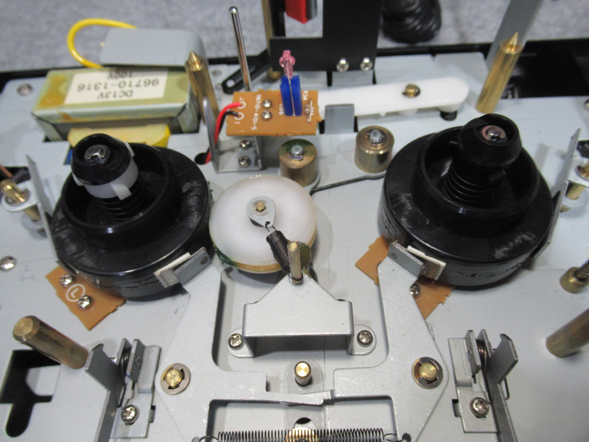 アイドラーとリールが現れました。この辺りはカセットデッキと同じ構造です。
