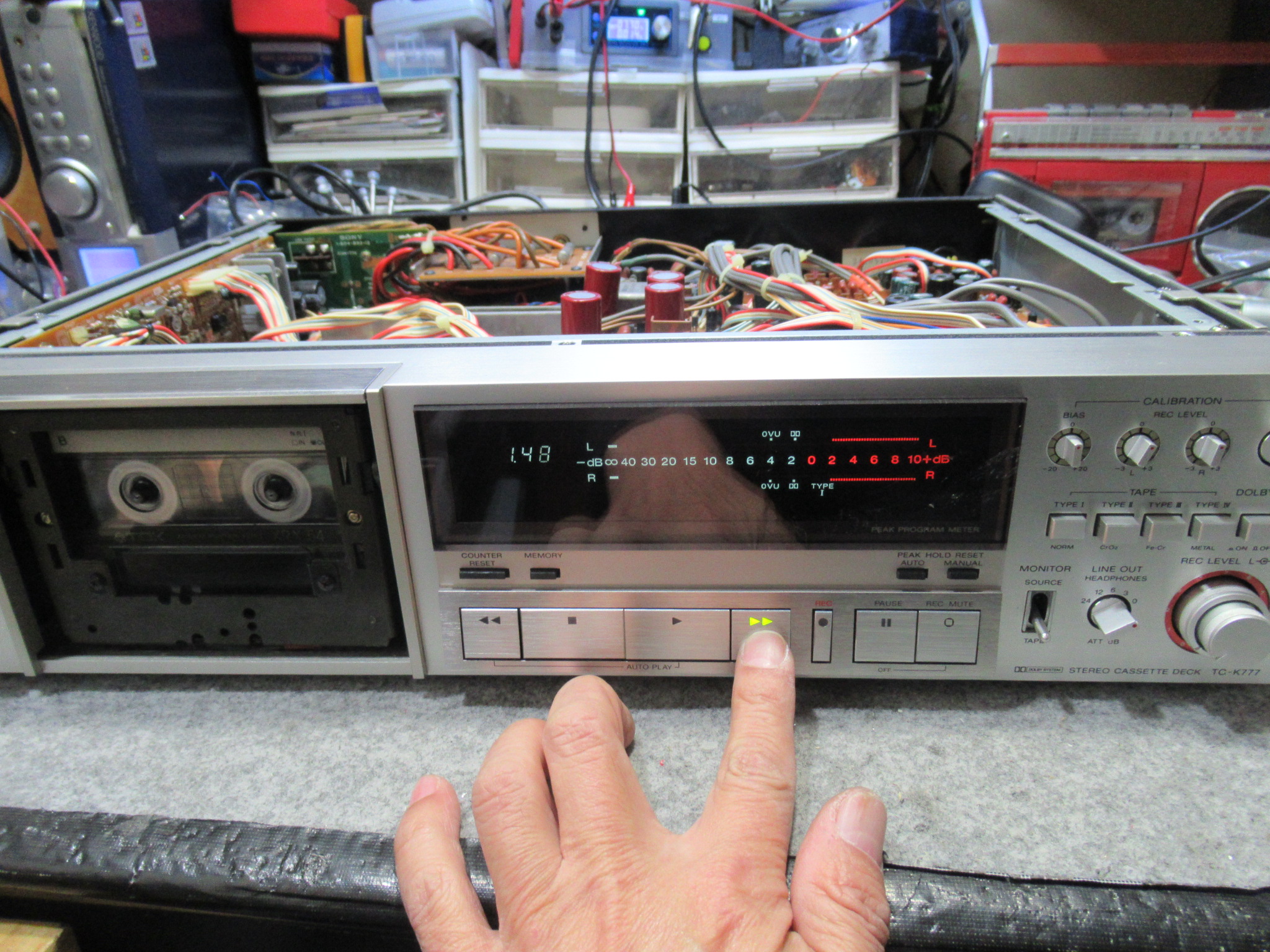 SONY製3ヘッドデュアルキャプスタンカセットデッキ、TC-K777の修理依頼をいただきました。