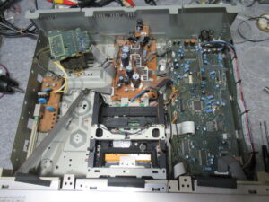 先日当店でD-07Aを修理されたお客様から、予備機として使用していたというD-06の修理依頼をいただきました。 蓋の開閉が不調になったのち、ほどなくして不動となったということです。 テープをセットする …