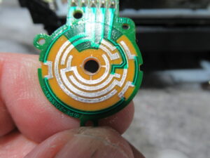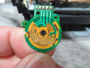 裏返します。メカの動作状況を検知するロータリーエンコーダーです。ここが接触不良を起こしていると考えられます。